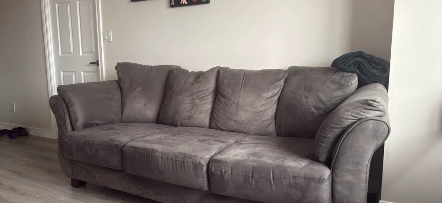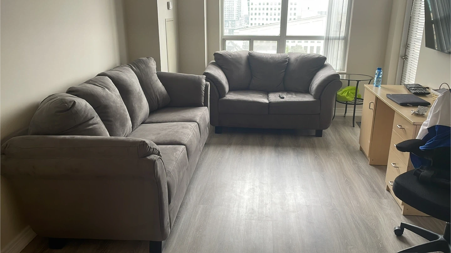 Selling a comfy Collier loveseat and sofa set in dark grey! These are in good condition and would be great for a living room. The current discounted price for the loveseat was $679 and the sofa was $699.