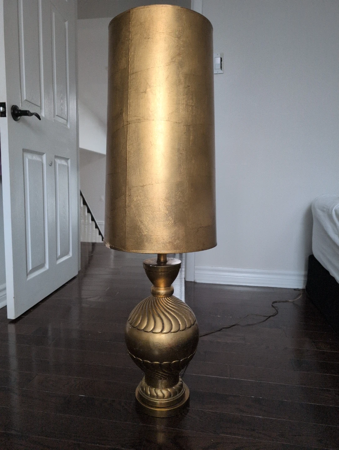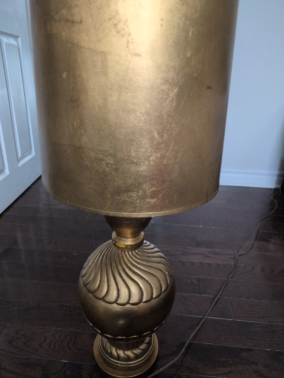 Selling a gold coloured table lamp. There are some signs of wear and tear, as shown in the pictures. It would be a great addition to any room!