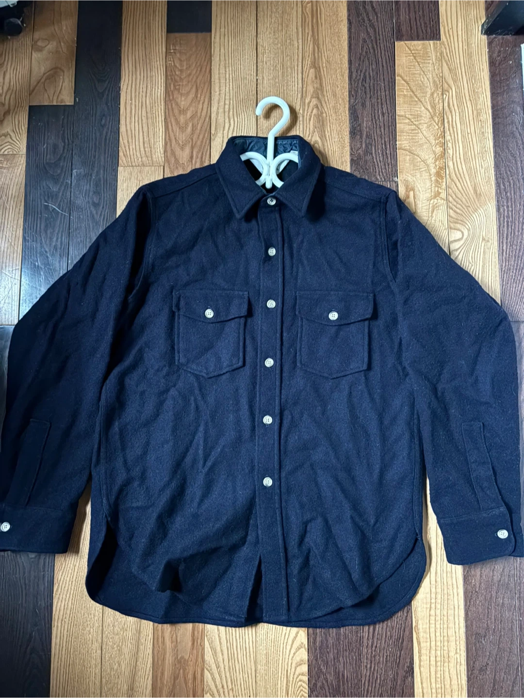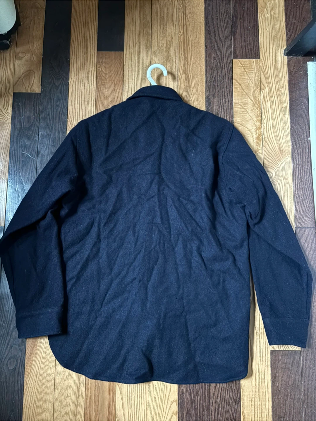 Has a very small moth hole on the inside of the collar. Hard to see in photos and not visible when wearing. Aside from that no other issues! Super high quality!