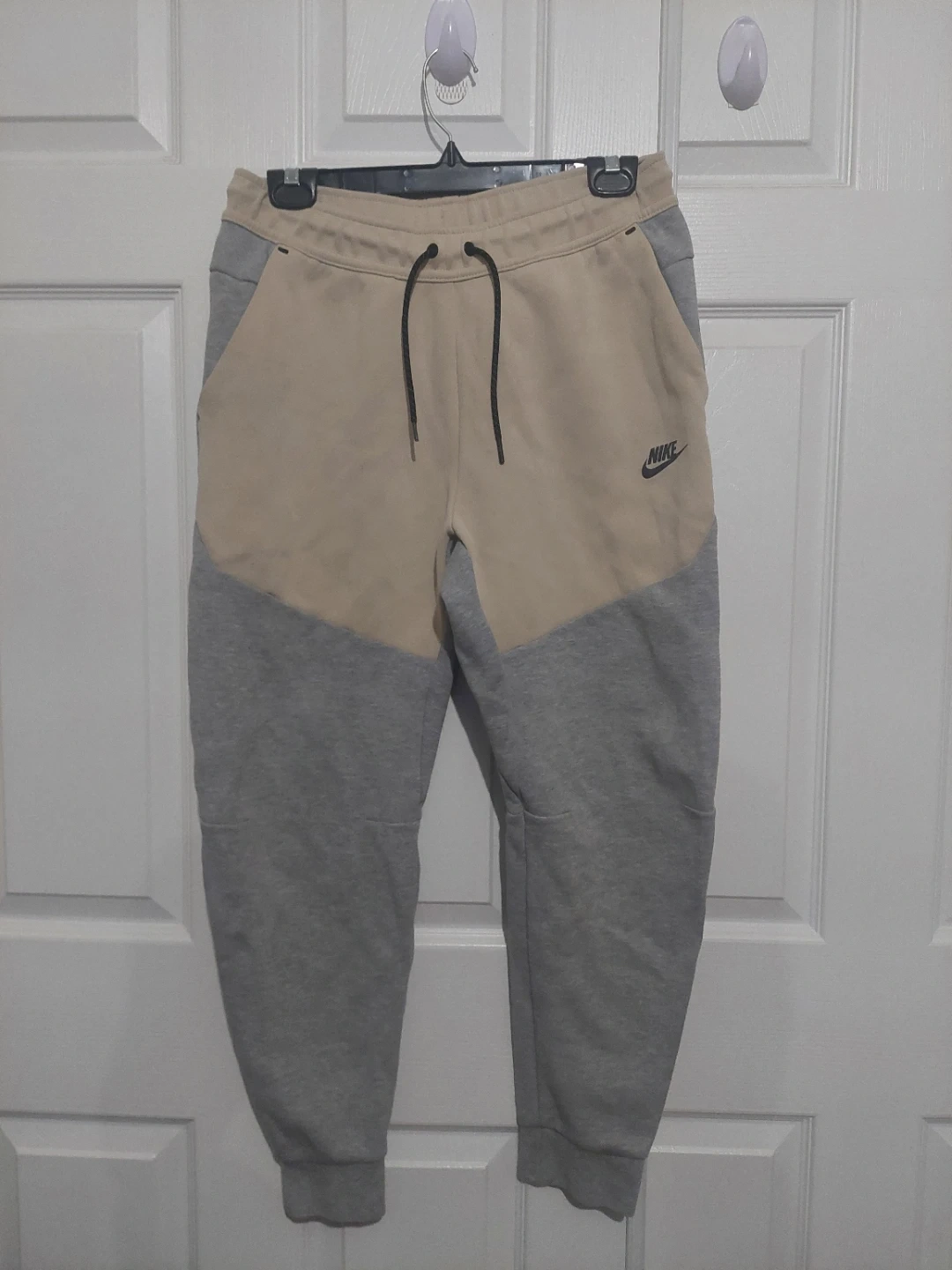Selling a pair of Nike Tech Fleece pants in size medium! They're a stylish beige and grey colour. Great for lounging or working out!
