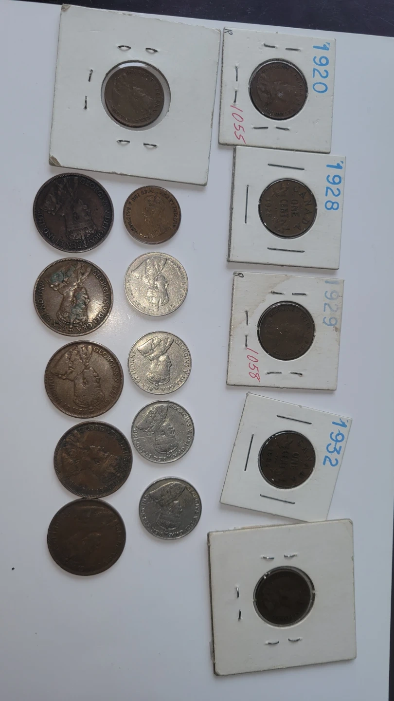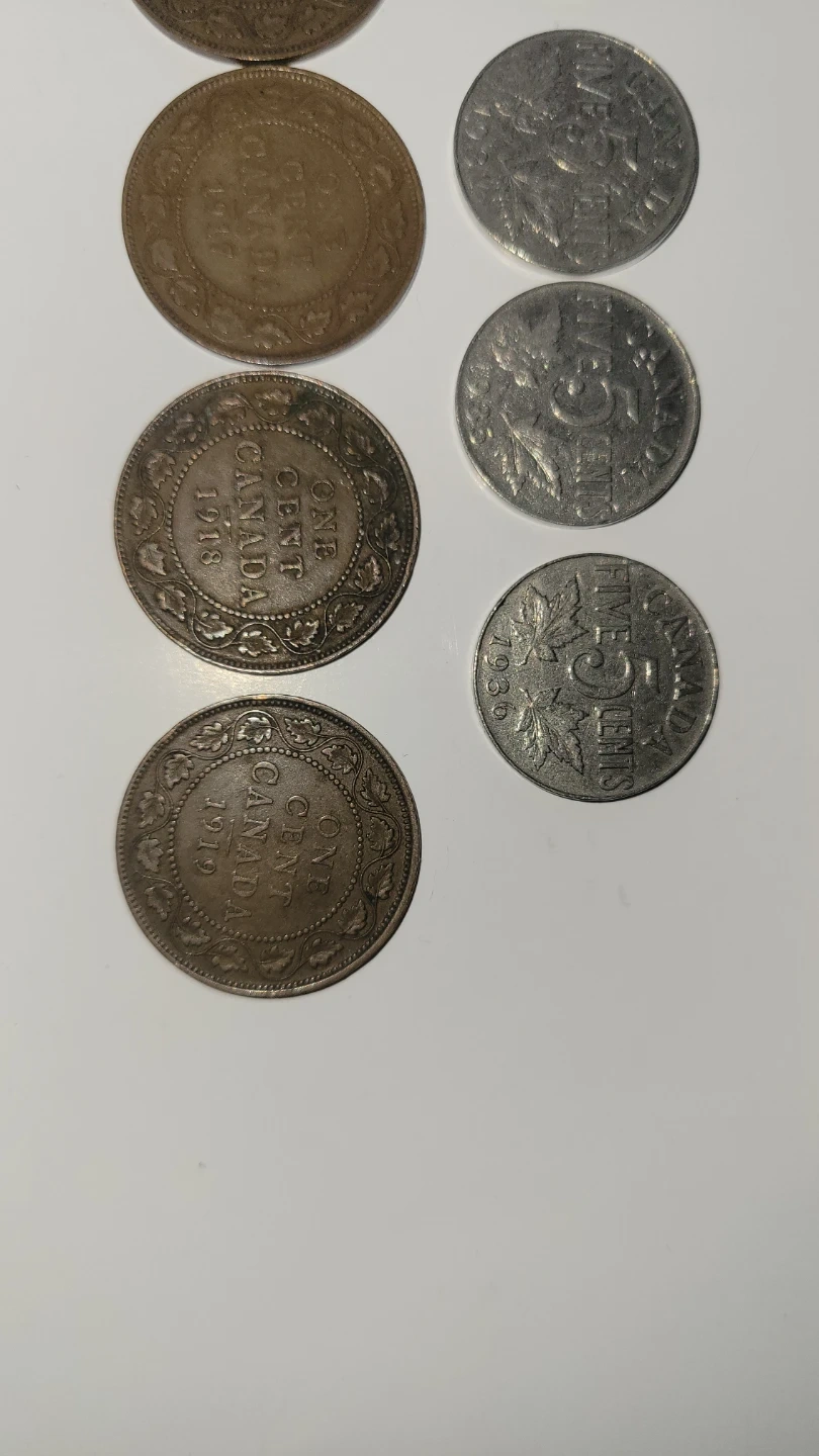 Selling a collection of vintage Canadian coins. Includes pennies from 1916 to 1934 and five-cent pieces from the same era. A great addition to any coin collection!