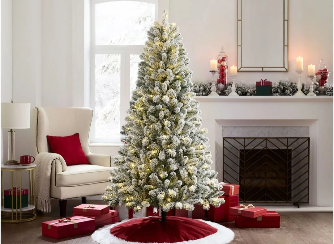 Selling a beautiful flocked Christmas tree, perfect for adding a touch of winter wonderland to your home this holiday season! It comes with pre-installed lights, making setup a breeze. The flocked branches give it a realistic, snowy look that will impress your guests