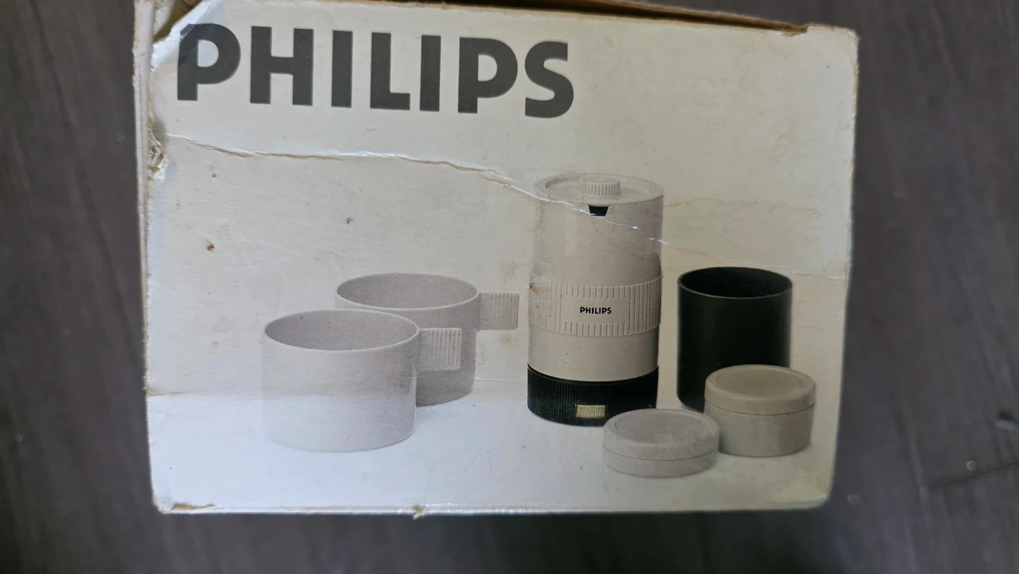 Selling a Philips Travel Duo Hot Food/Beverage Maker, model TC2200. It's a compact unit that contains a heating unit, two mugs, storage canisters, coffee filter and detachable cord. It brews up to two mugs (16 oz / 455 ml) of real drip coffee, fast and hot. It's great for students living away from home or for quick lunches at the office or shop! Operates on a standard 120 volt electrical outlet. Comes with the original box