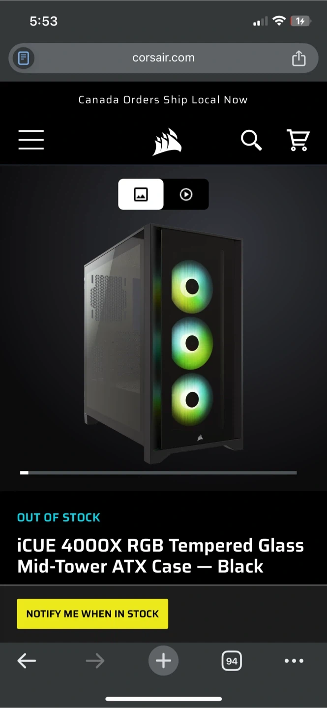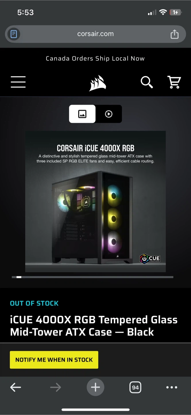Selling a Corsair iCUE 4000X RGB tempered glass mid-tower ATX case in black. This distinctive and stylish case has three included SP RGB ELITE fans and easy, efficient cable routing. It's perfect for your next PC build! Brand new in box