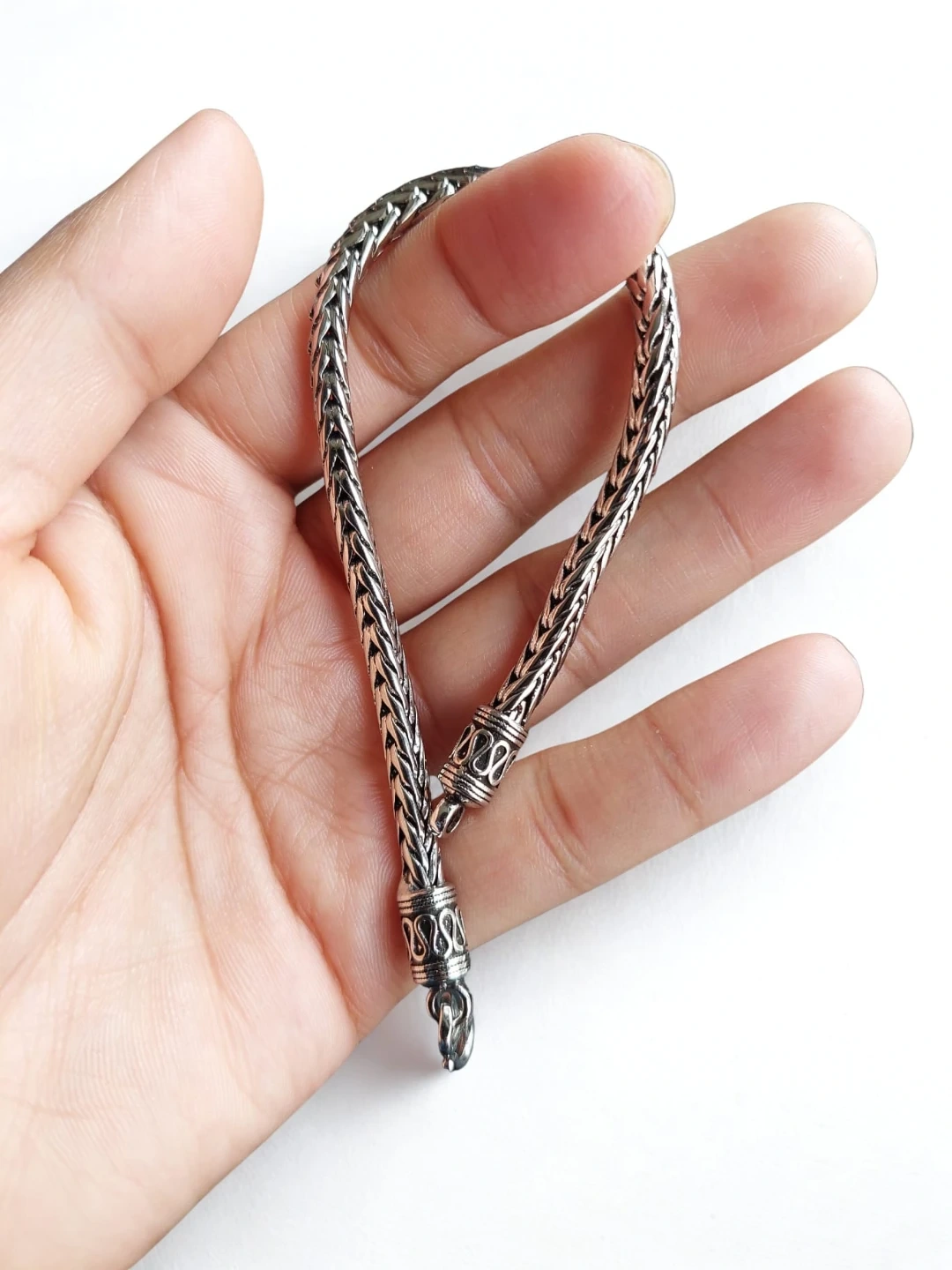 Selling a lovely sterling silver braided chain bracelet. It has a unique design. The clasp is secure and easy to use. A beautiful piece to add to your collection!