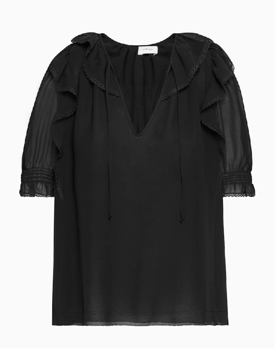 Wilfred Aritzia Amyris Tie-Front ruffle blouse in black, size small.