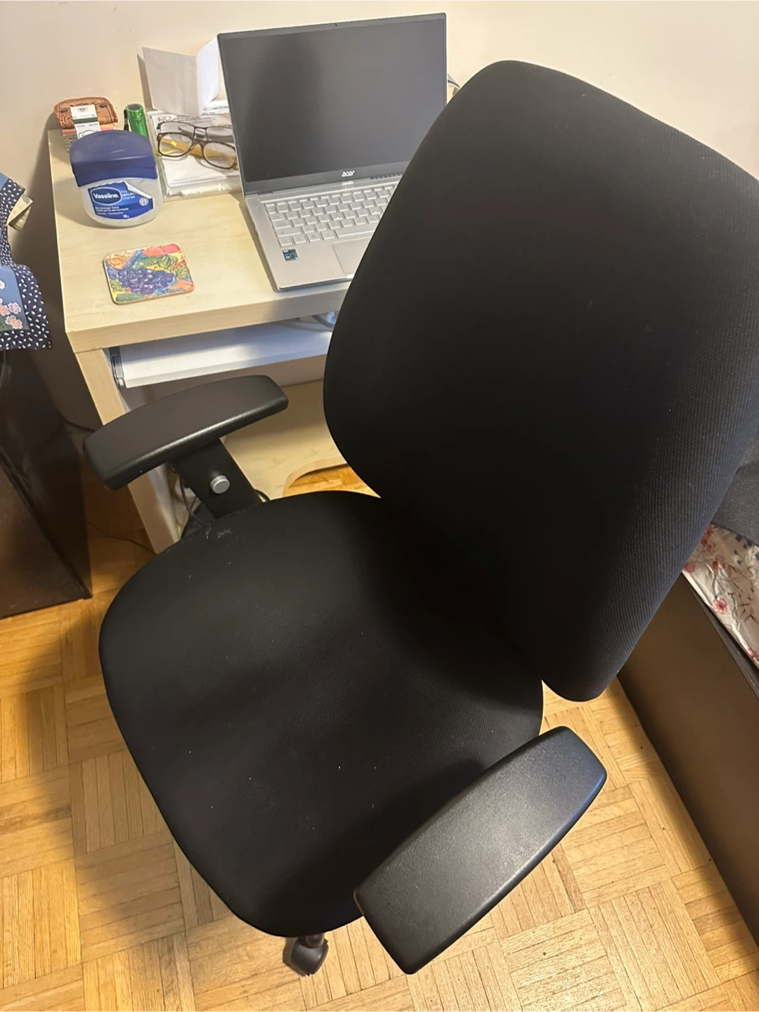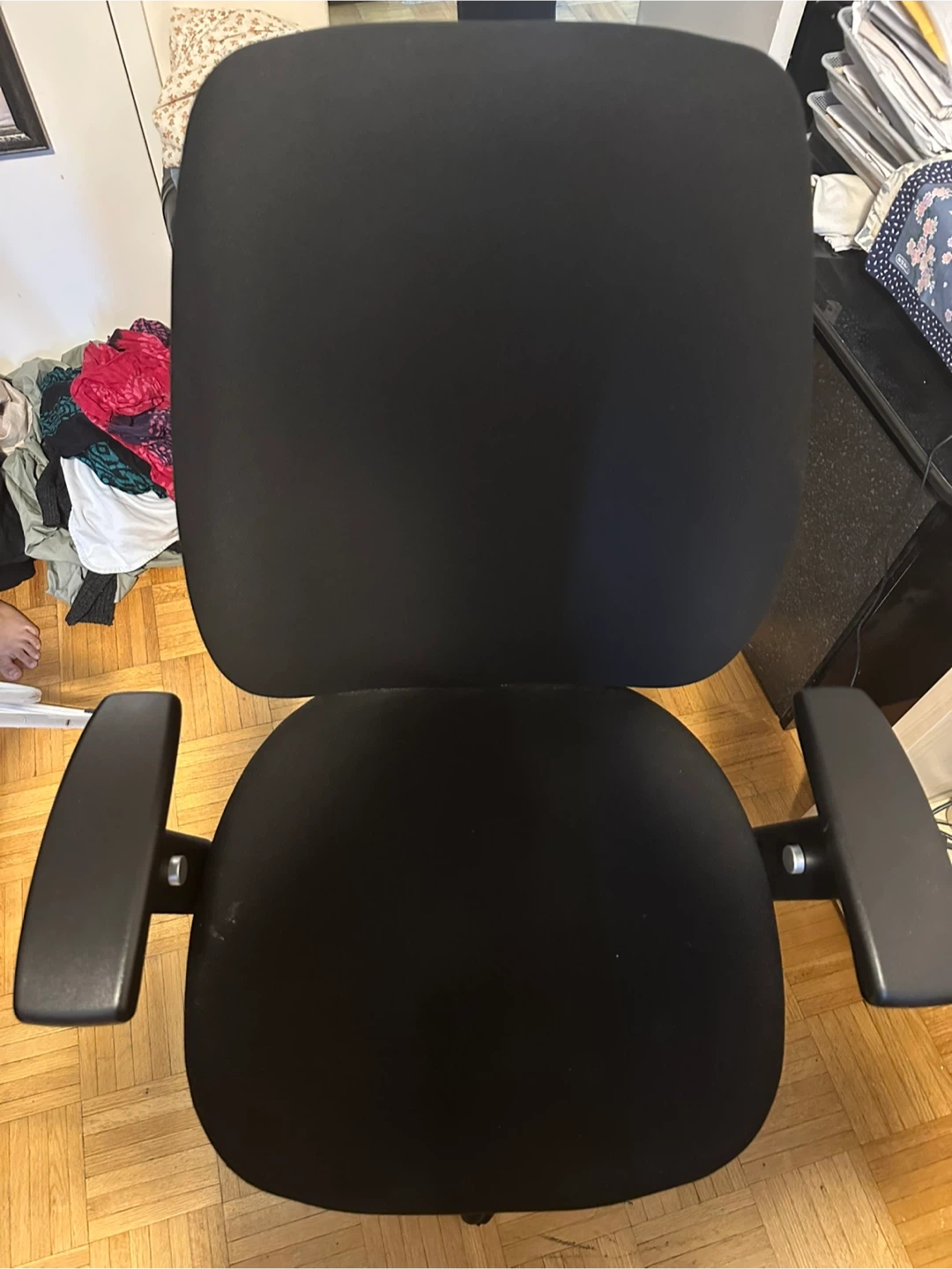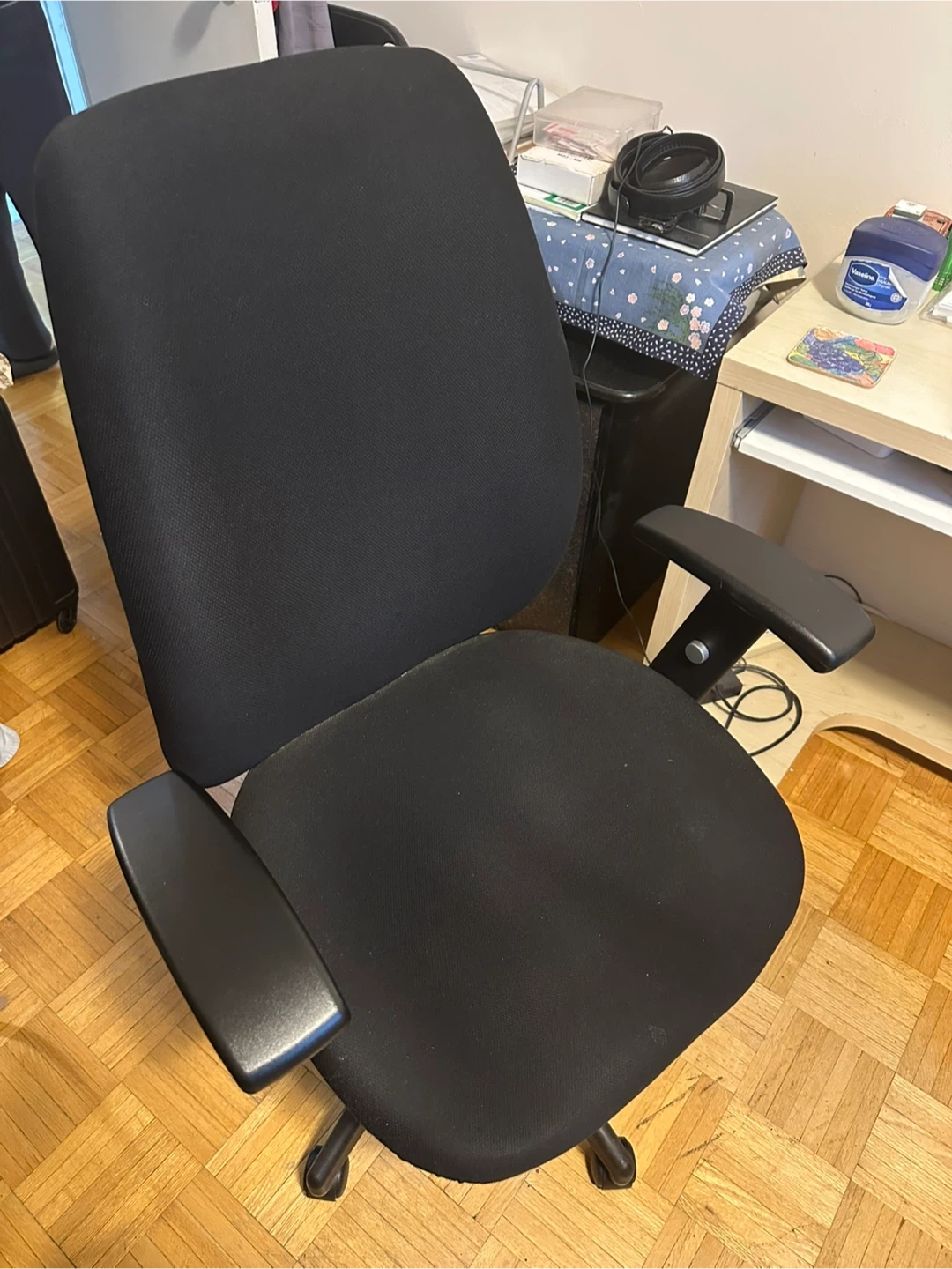Selling a comfy black office chair! It's in great shape and ready for a new workspace. Perfect for working from home or just adding some extra comfort to your office setup