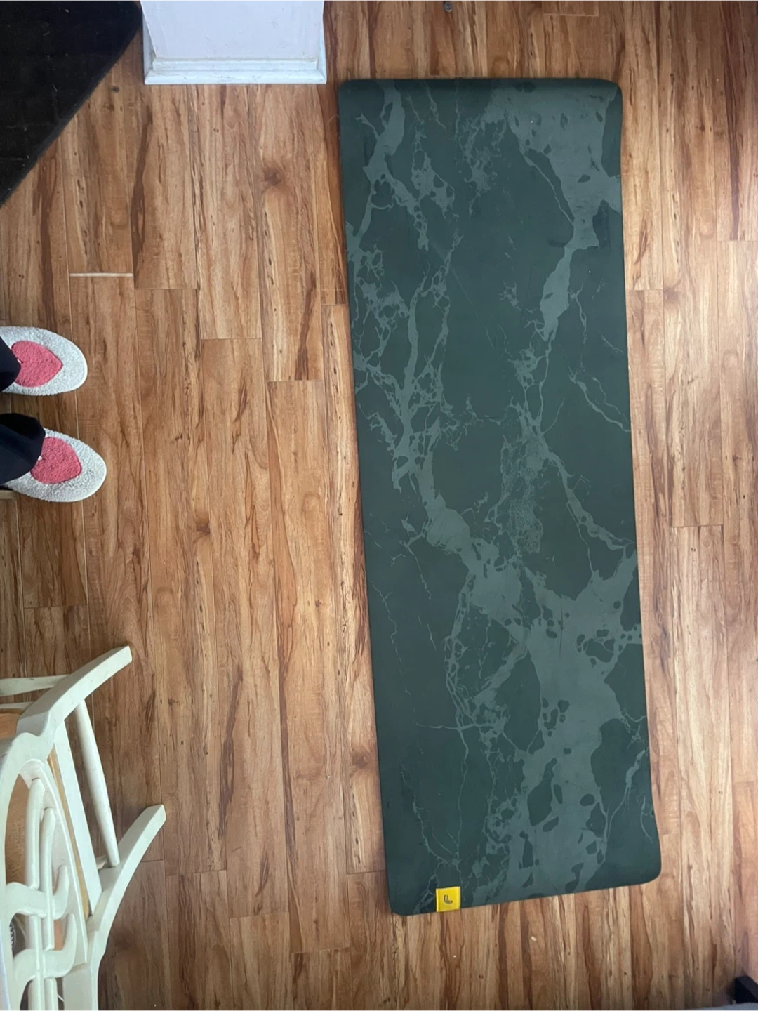 Selling a Liforme yoga mat in a marble green colour! It comes with a carrying bag and a strap. This mat is perfect for yoga enthusiasts looking for a high-quality and stylish mat for their practice