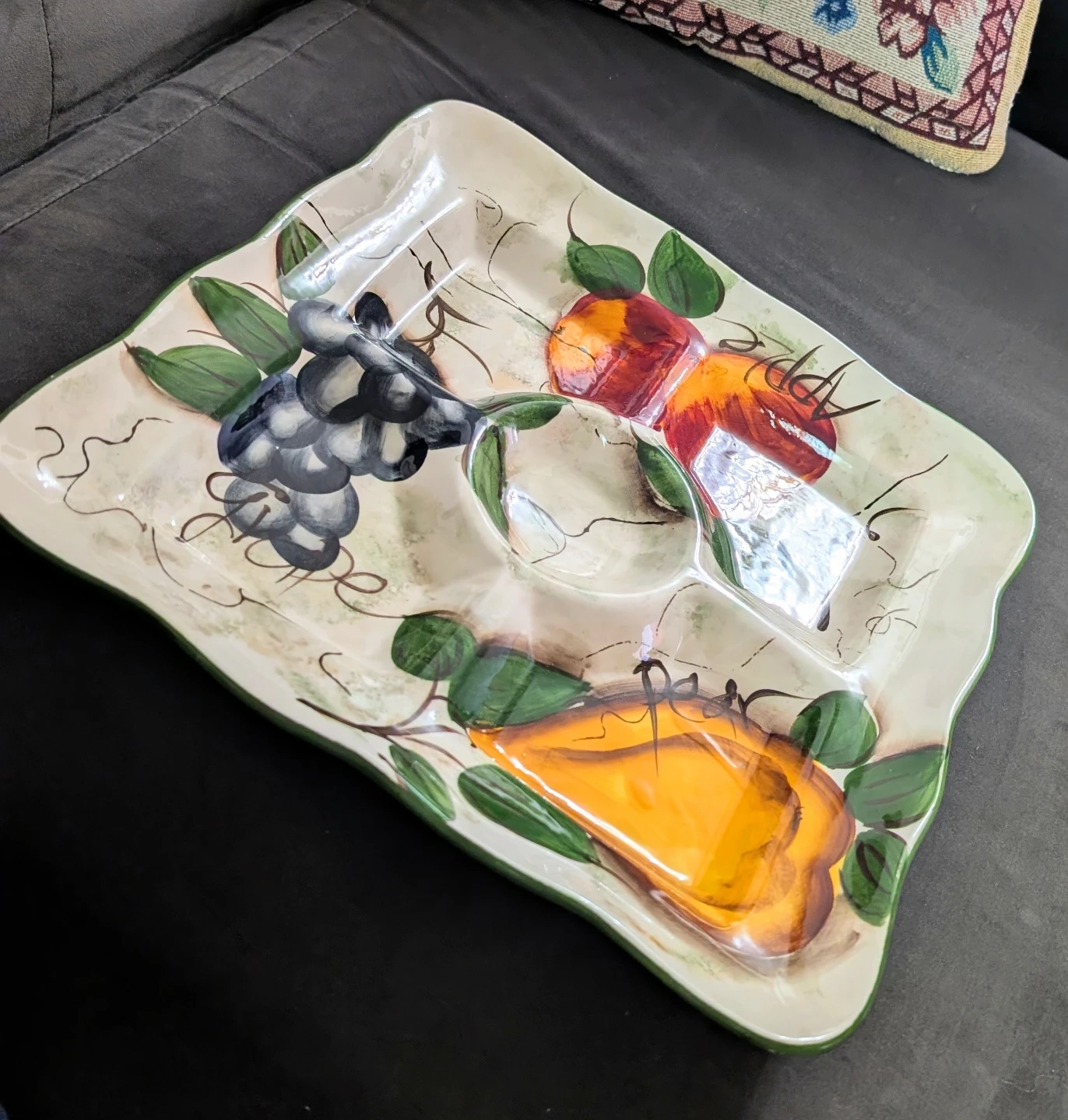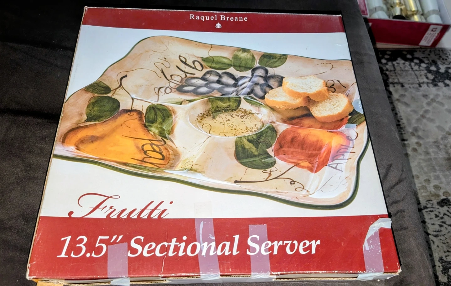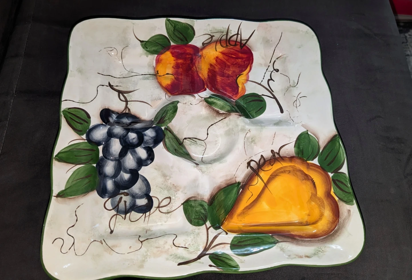 Selling a Raquel Breane 'Frutti' sectional server! It's 13.5 inches and features a lovely fruit design. Comes with the original box.
