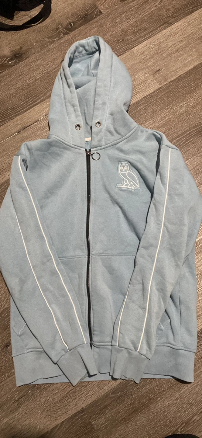Cozy OVO hoodie in a light blue colour! It's an extra large size and made of 100% cotton. Perfect for staying warm and showing off your style