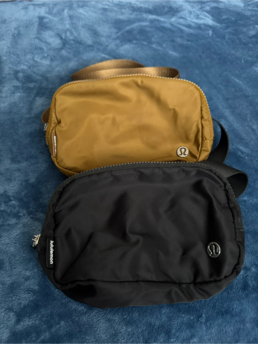 Selling two Lululemon Everywhere Belt Bags! One is black and the other is a golden color. These bags are perfect for keeping your essentials close while you're on the go