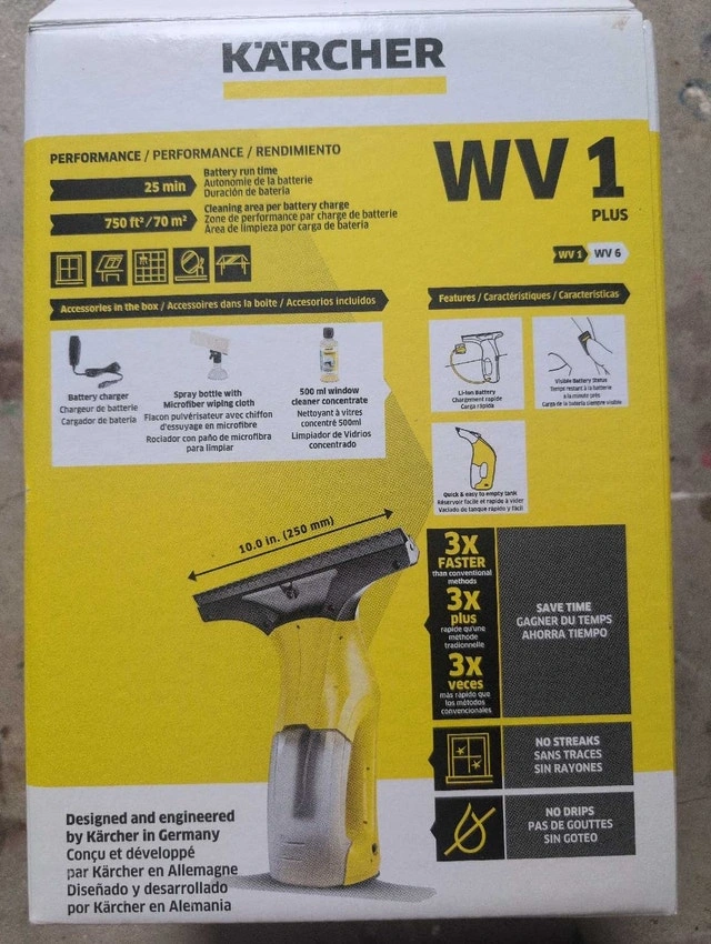 Clean your windows effortlessly with NEW Karcher WV1 Plus window vacuum, designed and engineered in Germany. This NEW window vac makes streak-free, drip-free window cleaning a breeze, offering a lightweight and compact solution for a variety of surfaces. Here are some features: * Battery run time: 25 min * Cleaning area per battery charge: 750 ft²/ 70 m² * Save time: 3x faster * No streaks, no rayons * No drips, pas de cotites Call, text, make an offer 7:05 -440-9159