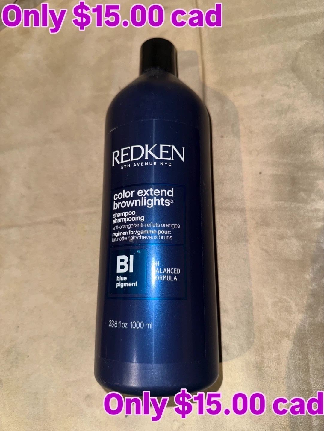 Selling a bottle of Redken Color Extend Brownlights shampoo. It's designed for brunette hair and helps with anti-orange tones. The bottle contains 33.8 fl oz (1000 ml).
