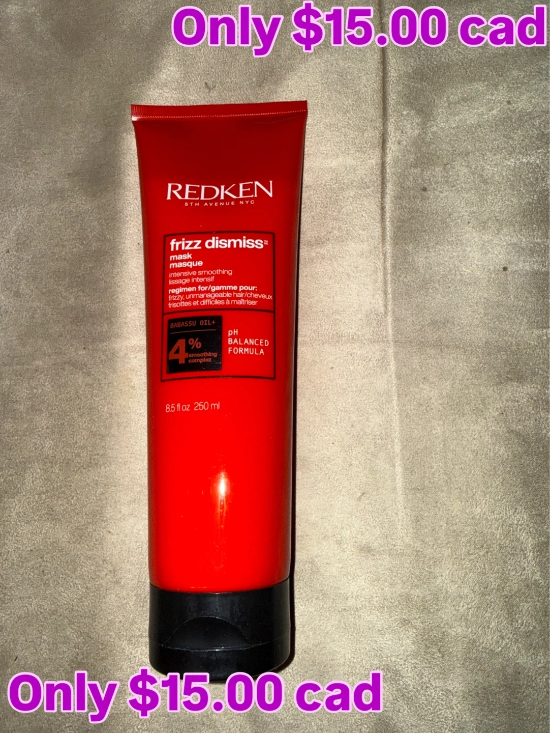 Selling a Redken Frizz Dismiss mask! It's an intensive smoothing treatment designed for frizzy and unmanageable hair. This mask contains Babassu Oil and is pH balanced for optimal results. It comes in a 250ml (8.5 fl oz) container.