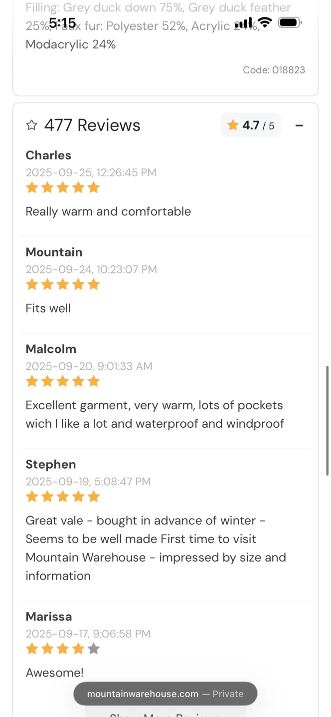 Waterproof - Tested to 5,000mm, suitable for moderate rain