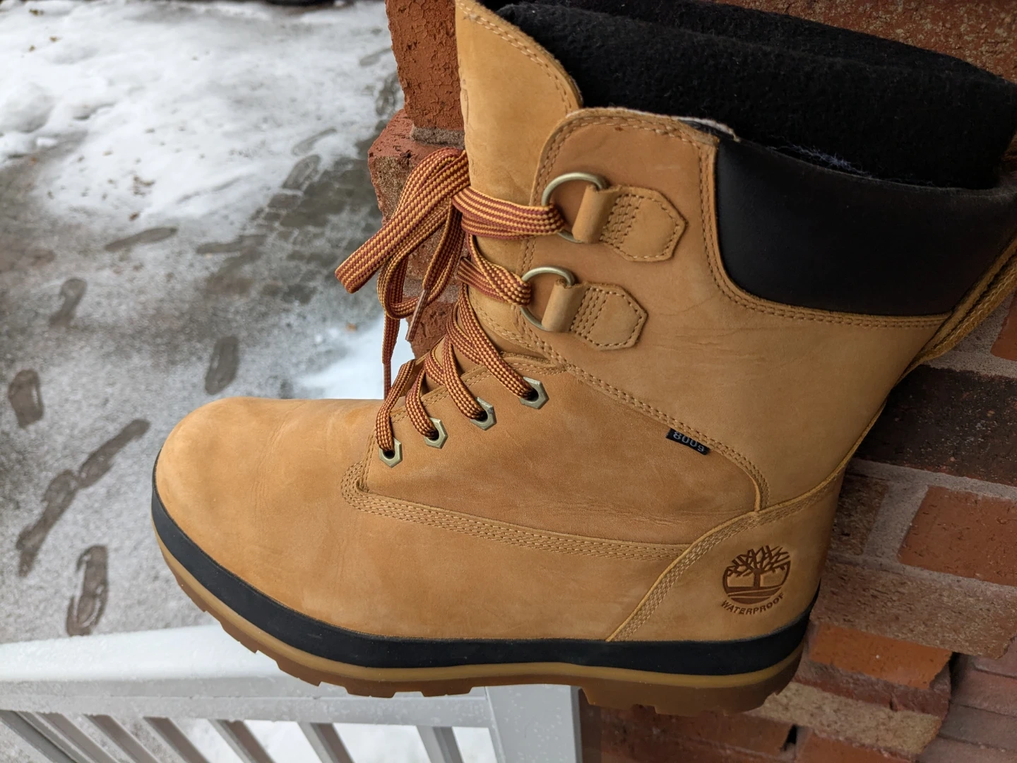 Selling a pair of Timberland waterproof winter boots. They are in good condition and ready for the snow! These boots are a tan colour.