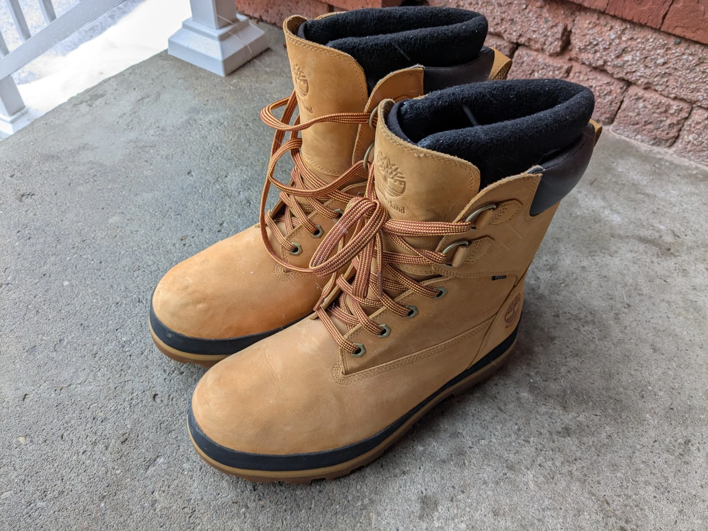 Selling a pair of Timberland waterproof winter boots. They are in good condition and ready for the snow! These boots are a tan colour.