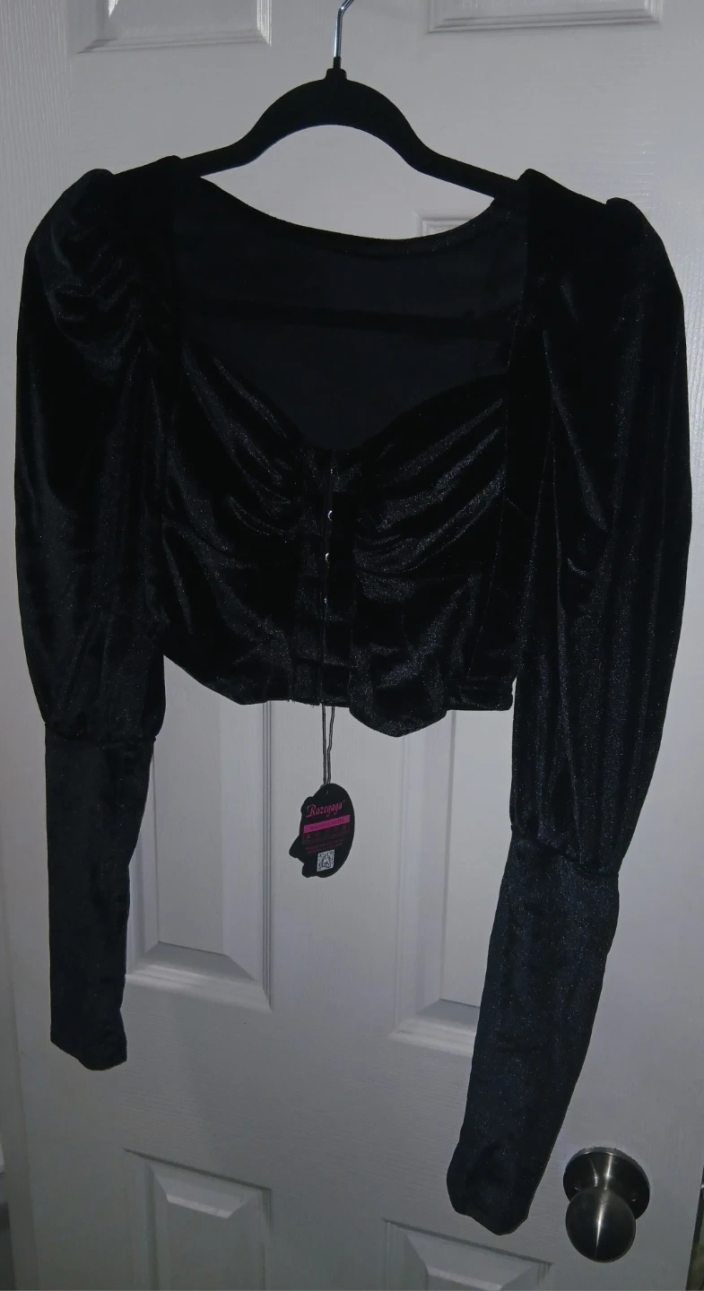 Velvet Puff Sleeve Corset Crop Top - (Small)