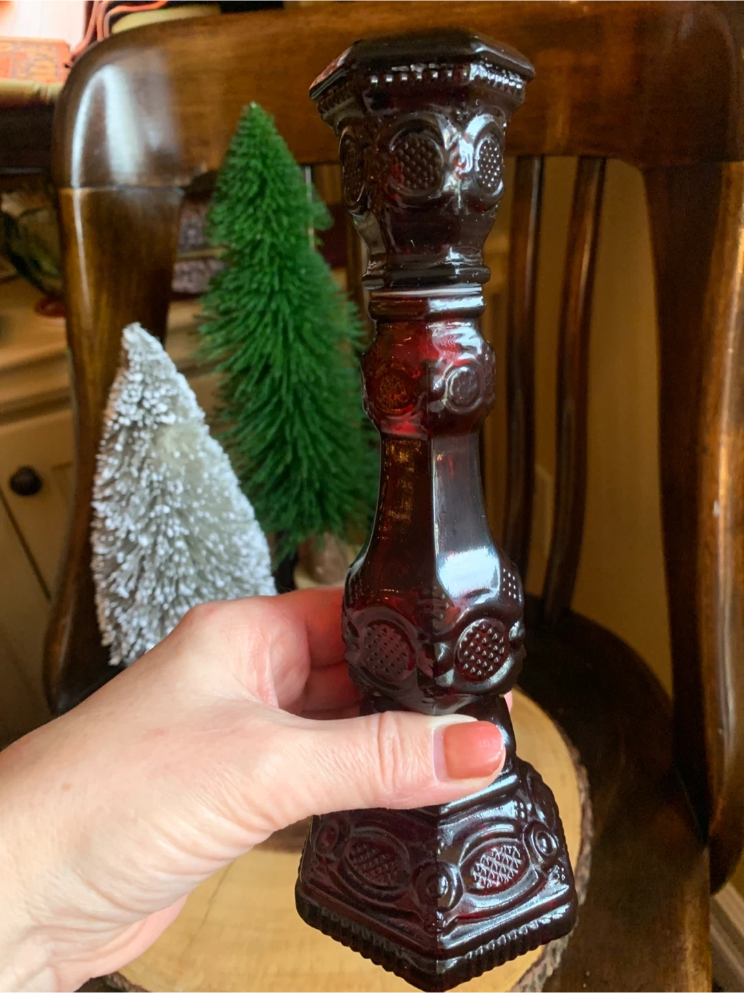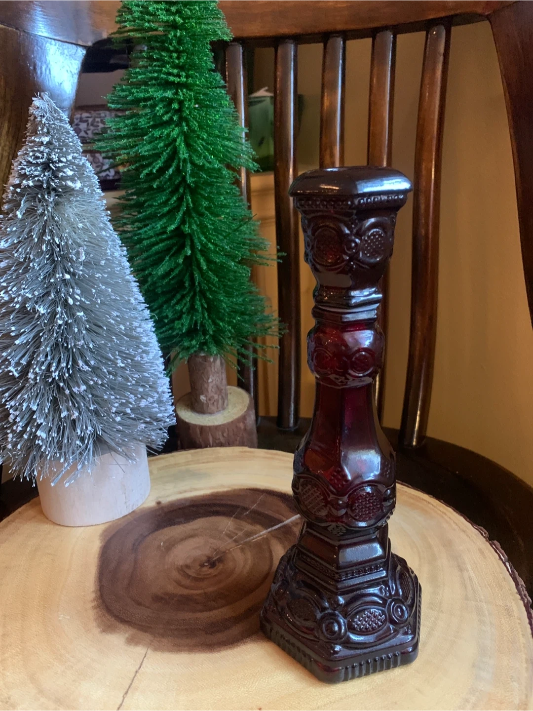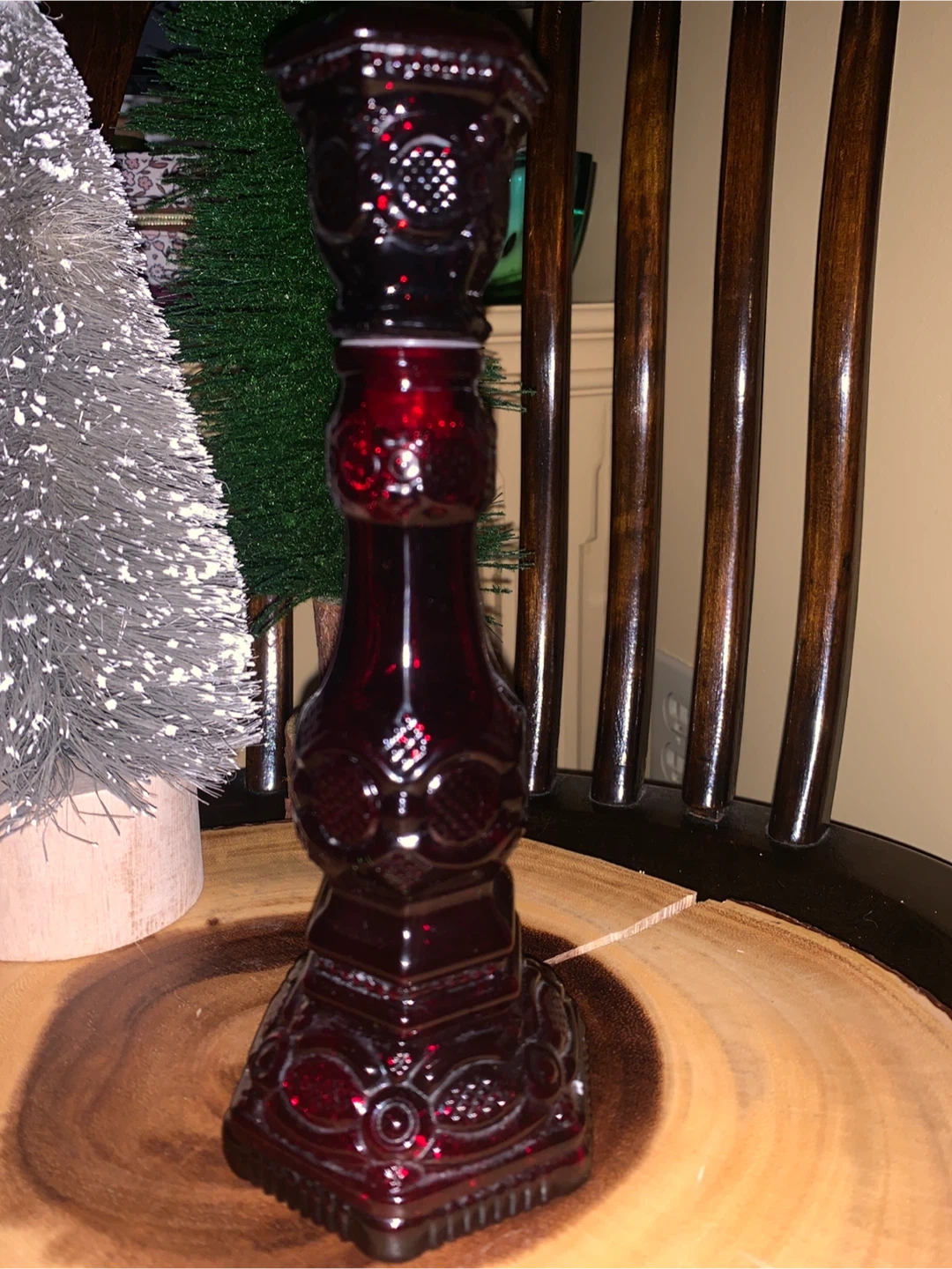 Selling a beautiful vintage 1876 Cape Cod ruby red glass candlestick holder from Avon. It was made in the 1970’s and was originally filled with cologne. It has no cracks or chips and is in great condition. It could function as a decor piece, filled with bubble bath or your fav perfume. It is about 9” tall. It would make a lovely addition to your bathroom or bedroom vanity. A very nice collector’s piece!