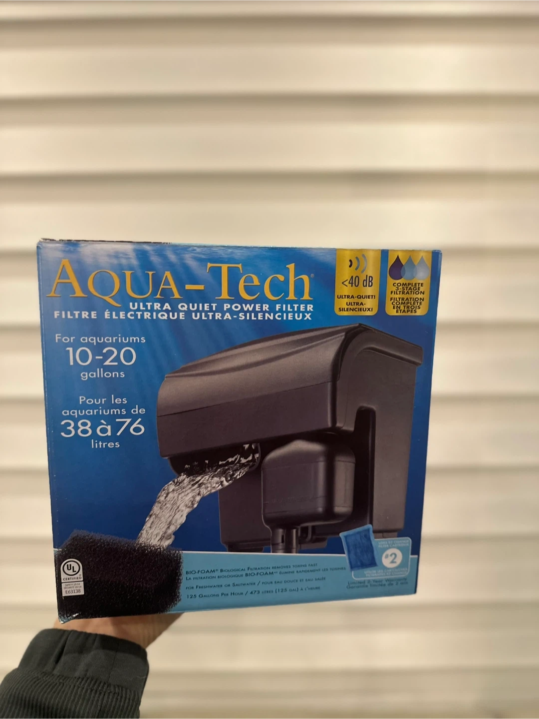Selling an Aqua-Tech Ultra Quiet Power Filter for aquariums, suitable for 10-20 gallons (38 to 76 litres).