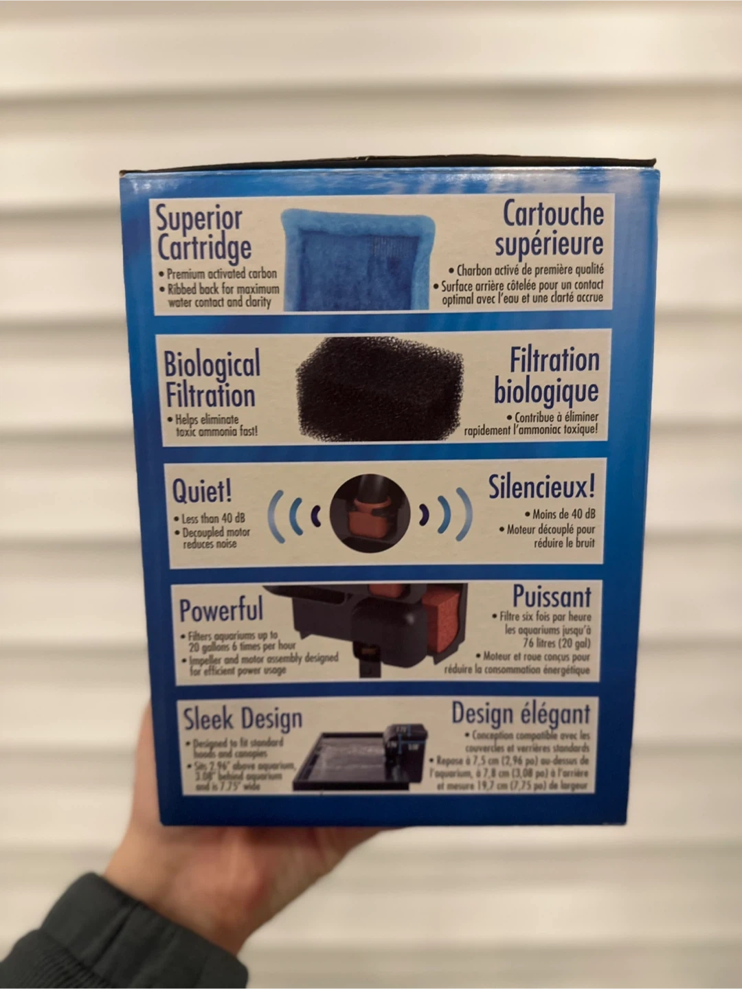 It features 3-stage filtration for healthier fish, including coarse floss, carbon filtration, and Bio-Foam.