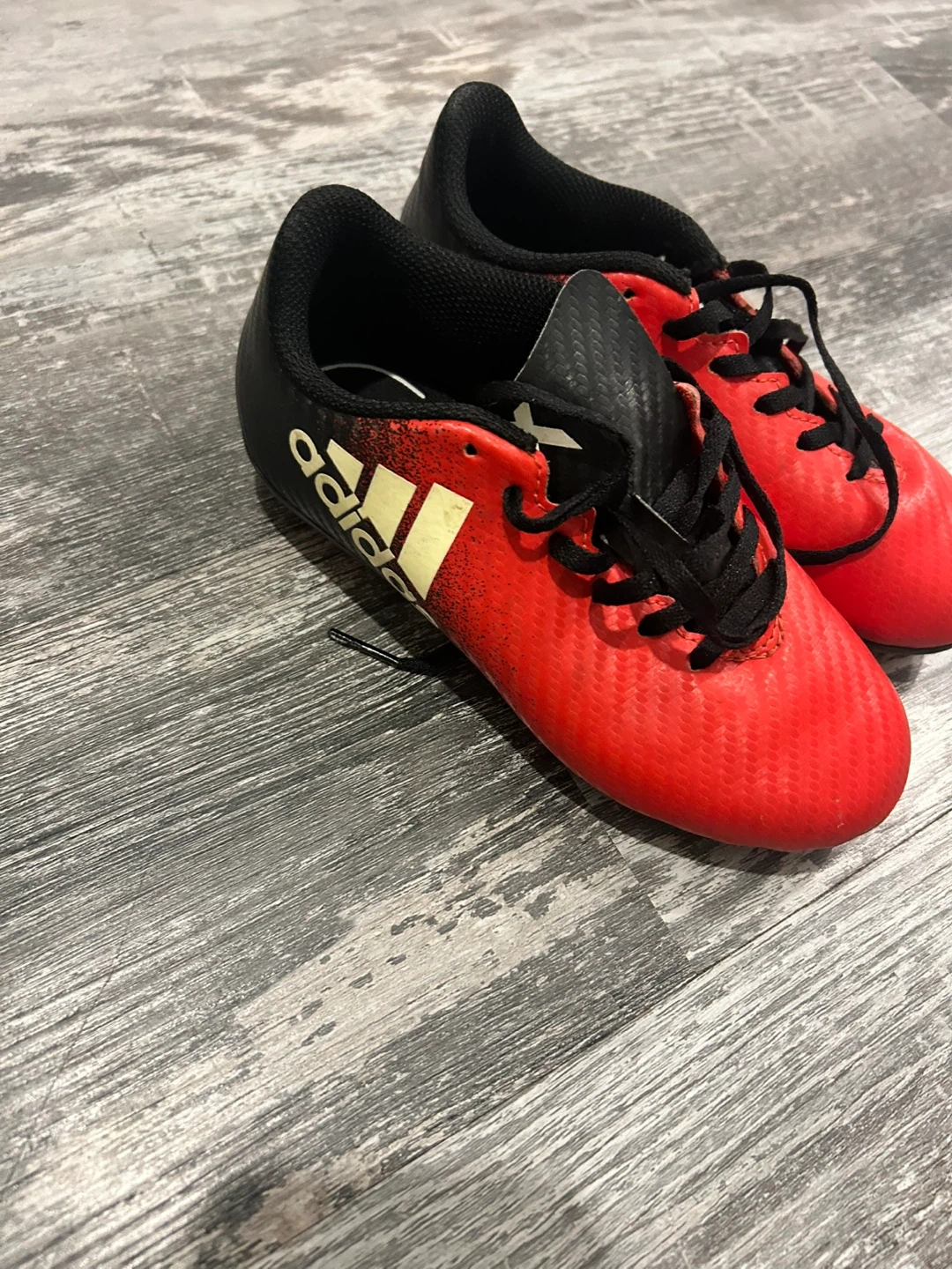 2 for 1 deal Selling a pair of kids' Skechers sneakers in blue and green, and a pair of Adidas soccer cleats in red and black. The Skechers are in good used condition and the cleats are never worn ready for the field or playground! Both size 12