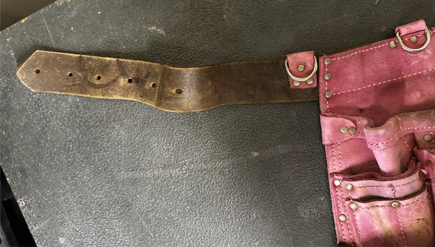 Worn in Pink Cadillac Journeyman Lumber tool belt from Dunbar Lumber.
