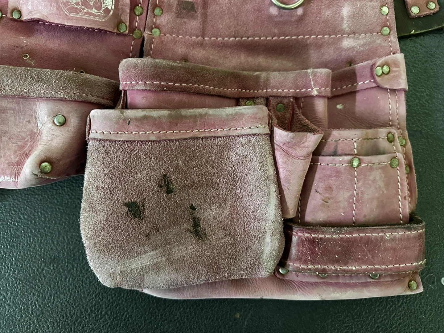 Worn in Pink Cadillac Journeyman Lumber tool belt from Dunbar Lumber.