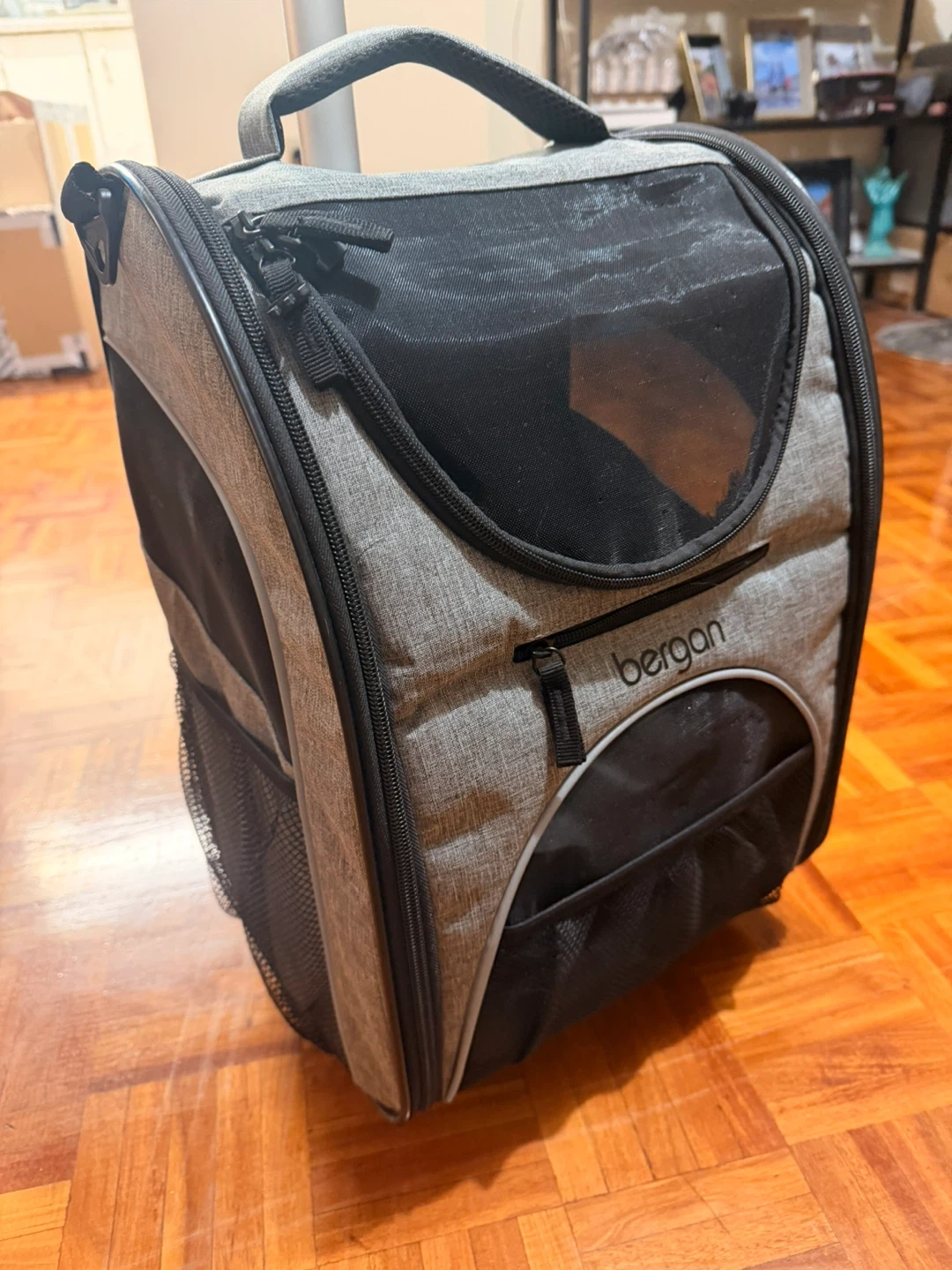 Selling a Bergan Wheeled Pet Carrier in grey. It's in great condition and ready for your furry friend's travels! This carrier is perfect for taking your pet on trips with ease.