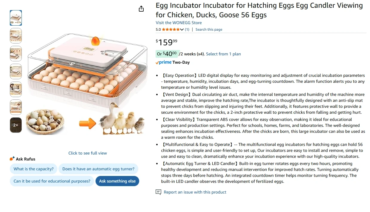 Egg Incubator Incubator for Hatching Eggs Egg Candler Viewing for Chicken, Ducks, Goose 56 Eggs, Brand New in the Box/Sealed