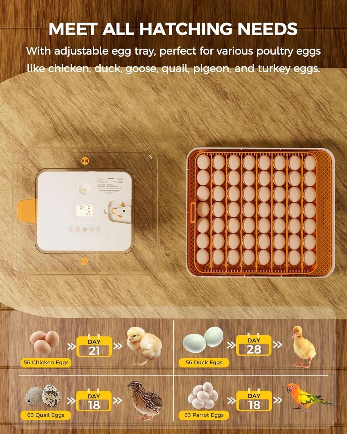 【Multifunctional & Easy to Operate】-- The multifunctional egg incubators for hatching eggs can hold 56 chicken eggs, is simple and user-friendly to set up, Our incubators are easy to install and remove, simple to use and easy to clean, dramatically enhance your incubation experience with our high-quality incubators.