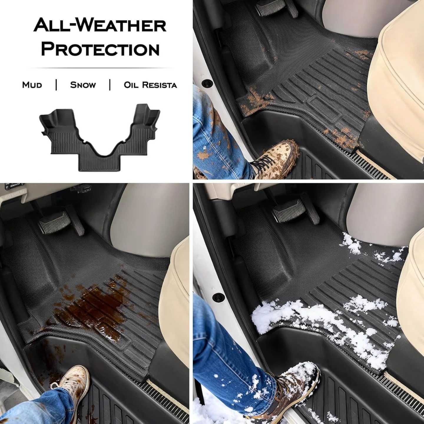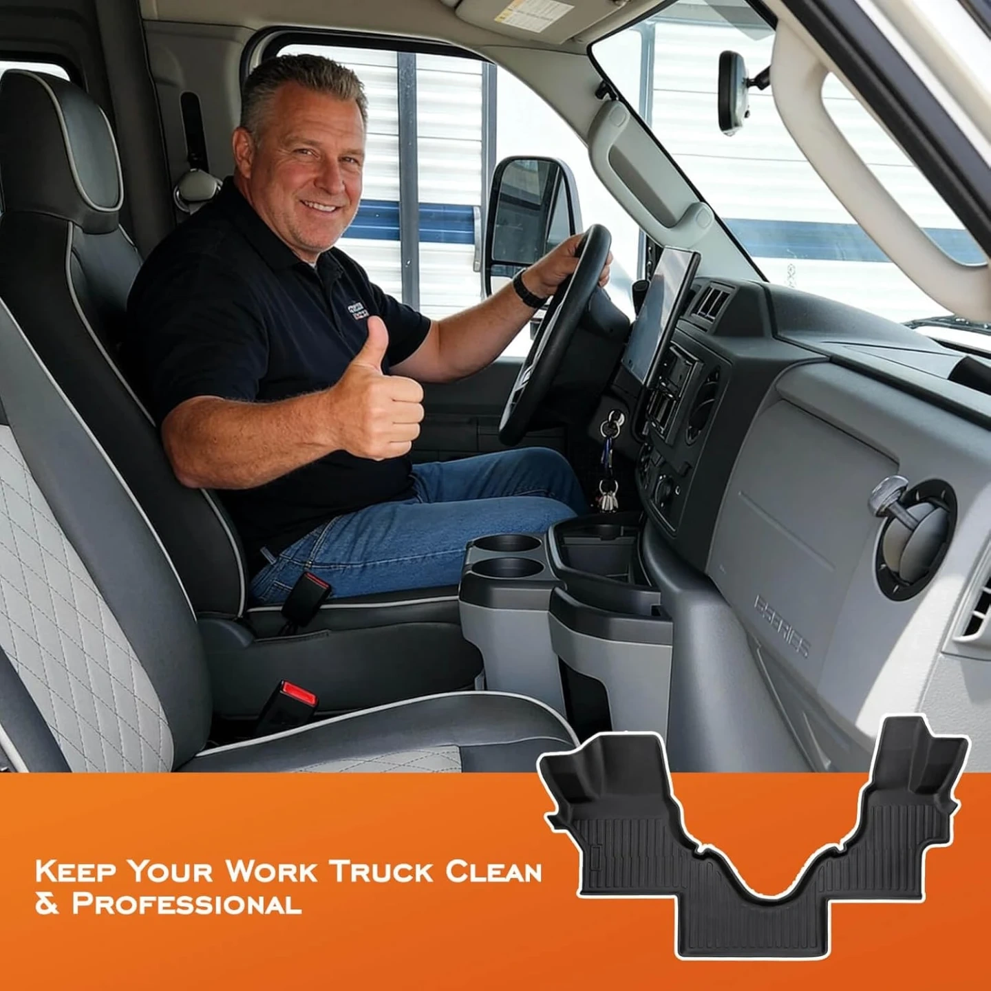Dur-able All-Weather Protection: Made with dur-able and heavy-duty TPE material, these all weather floor mats for Ford Econoline E150 E250 E350 E450 2007-2024 2025 2026 protect your van & RV from rain, snow, mud, and spills, keeping your vehicle interior clean and dry throughout the year