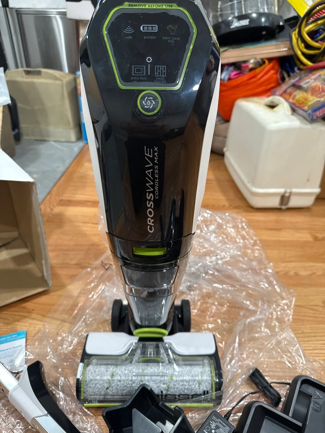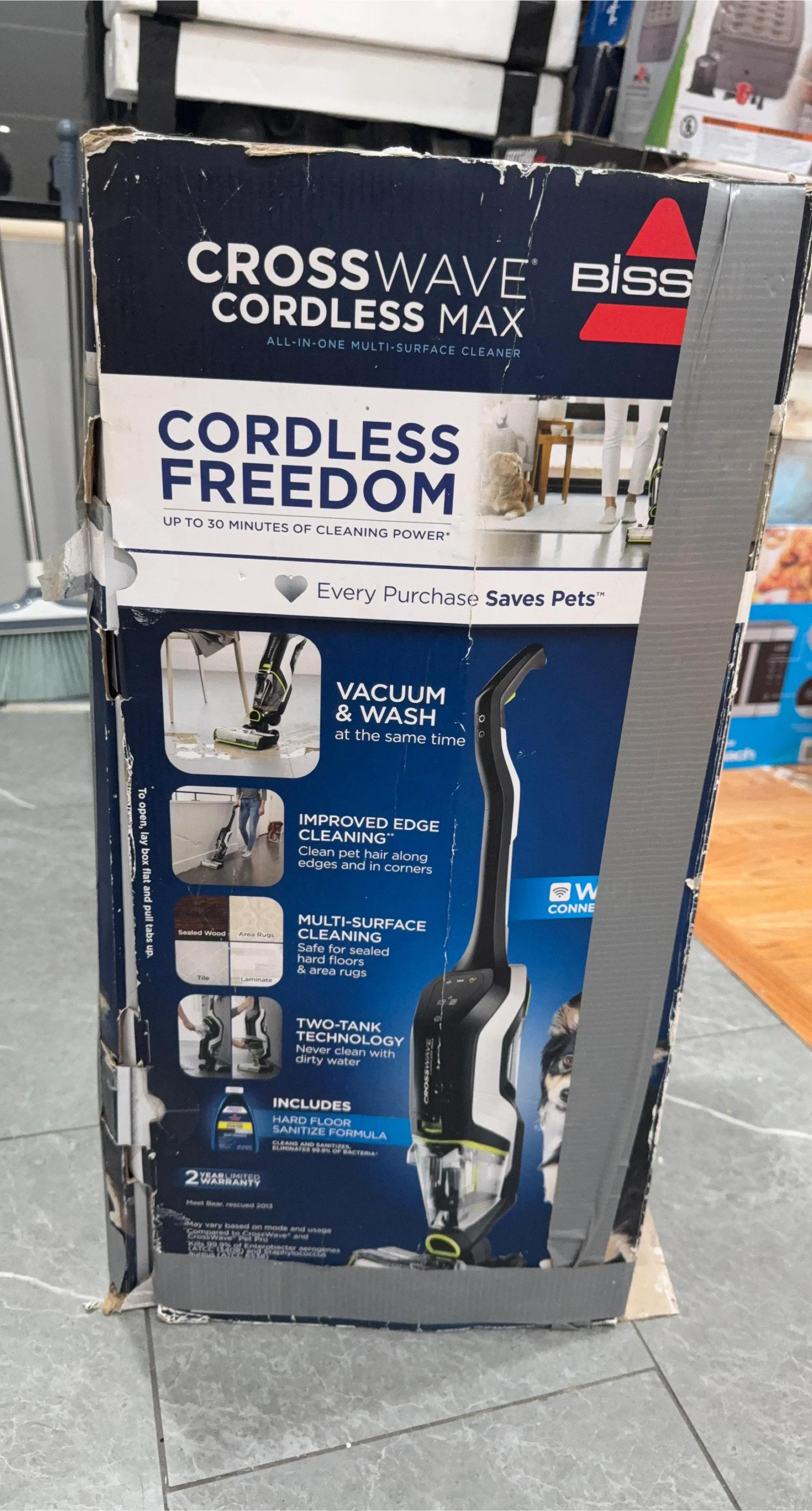 Selling a Bissell CrossWave Cordless Max all-in-one multi-surface cleaner. It's designed to vacuum and wash your floors at the same time! This model offers cordless freedom for up to 30 minutes of cleaning power. It includes a hard floor formula and comes with all the original components and the box