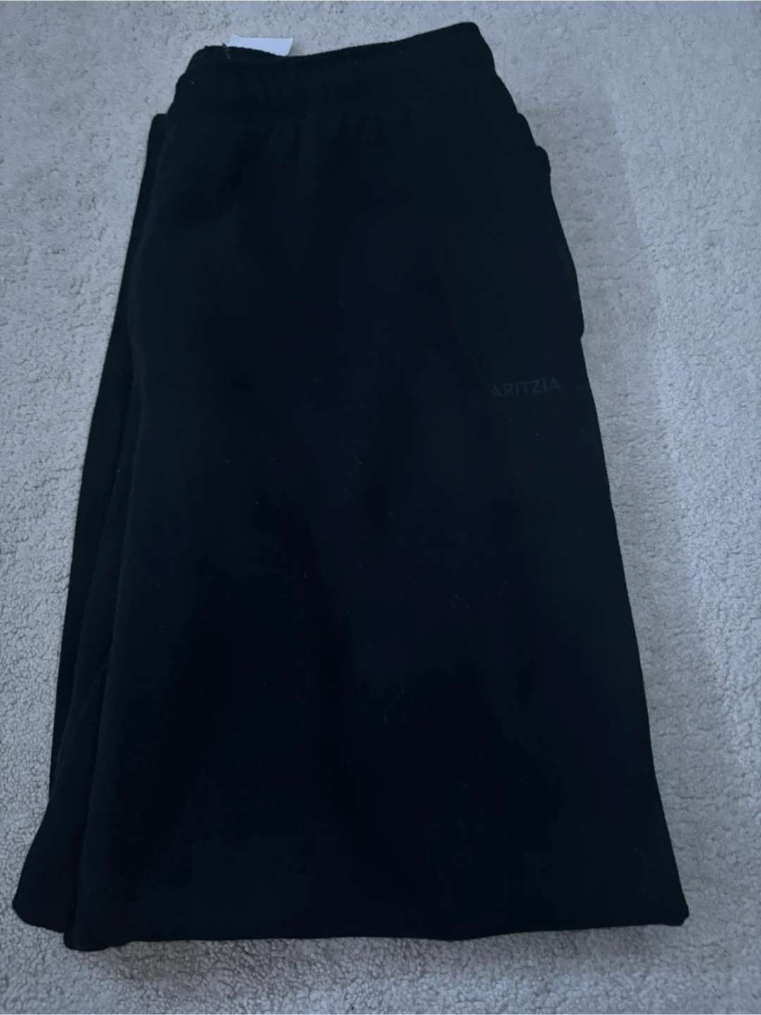 Selling a pair of Aritzia Sweatfleece Mega Fit pants in a size large! They are black and in great condition. Perfect for lounging or running errands BRAND NEW not even worn yet just bought at Dec 27th 2025 (receipt proof) if wanted
