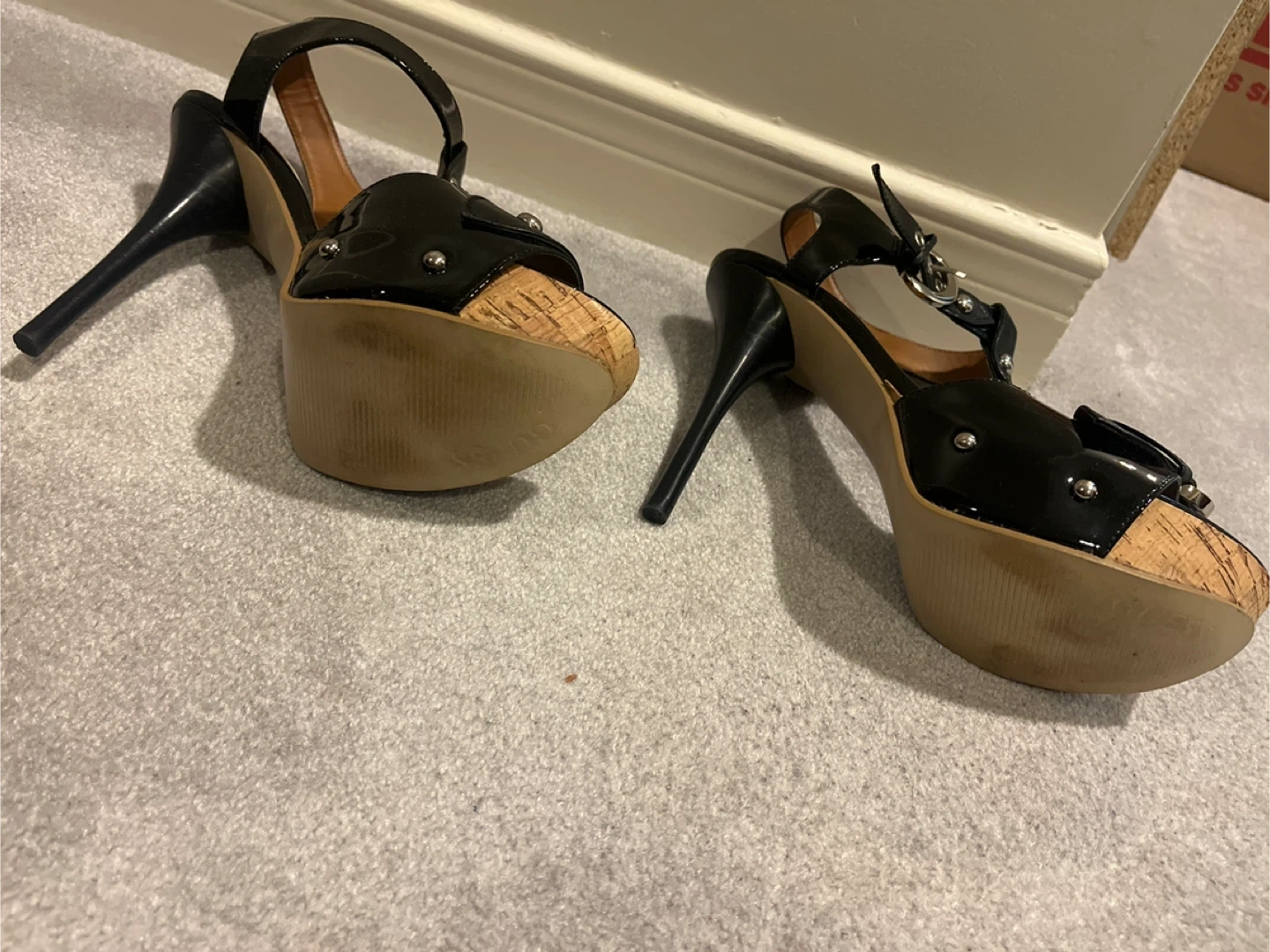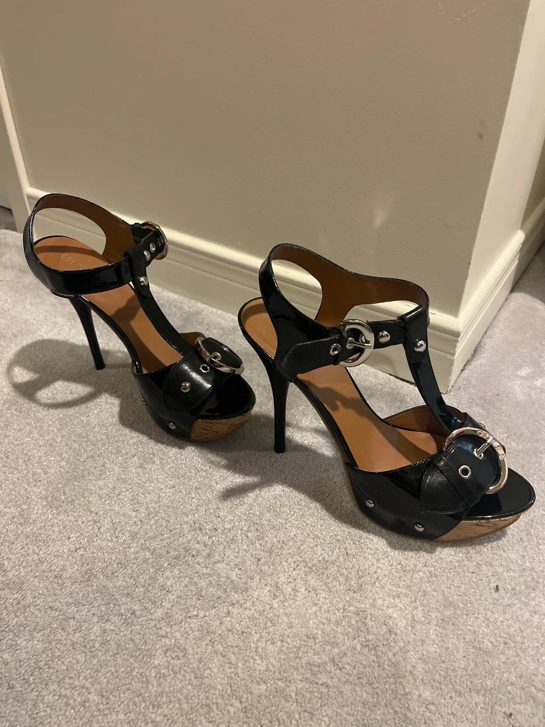 Selling a pair of Guess black heeled sandals. They come in their original box. These stylish platform heels are perfect for a night out!