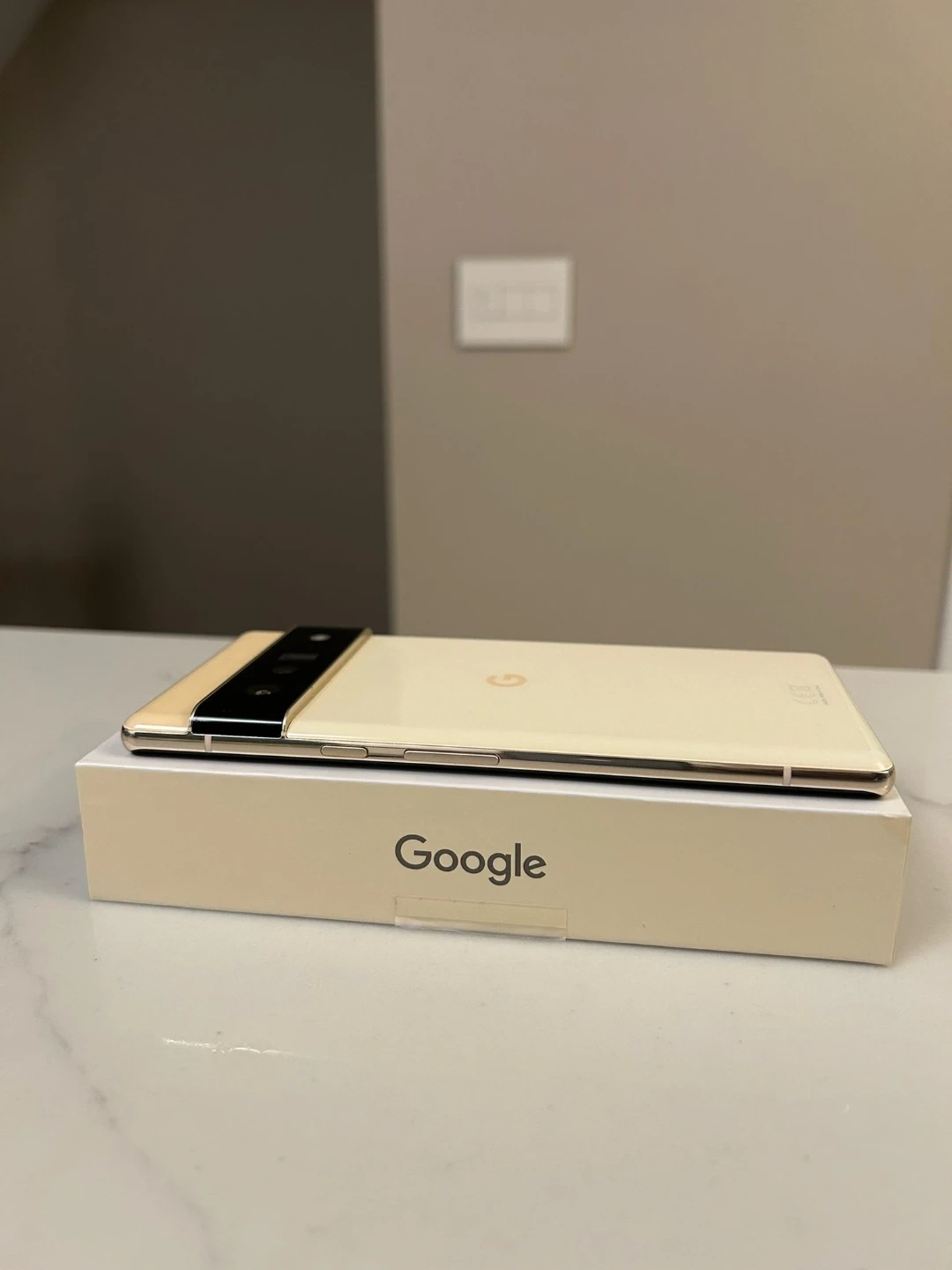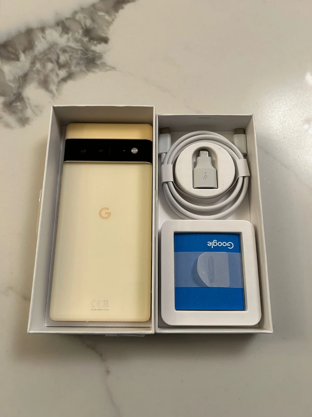 Selling a Google Pixel 6 Pro in the Sorta Sunny colour. It is in like-new condition and comes with its original box and included components!