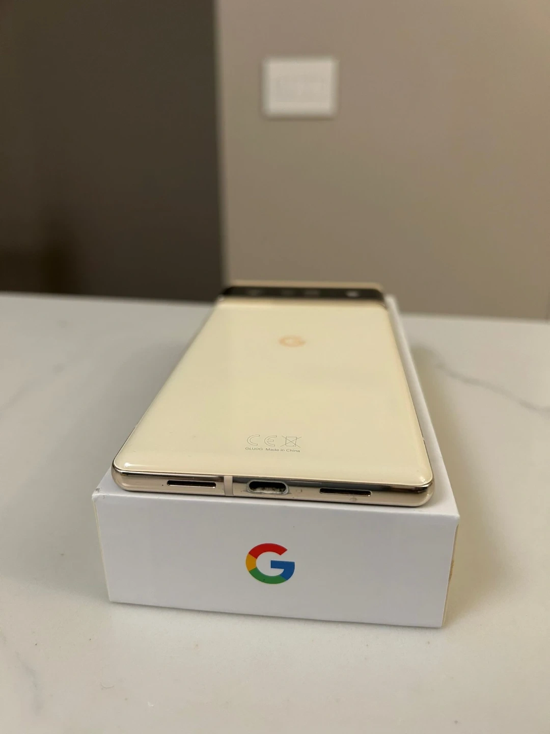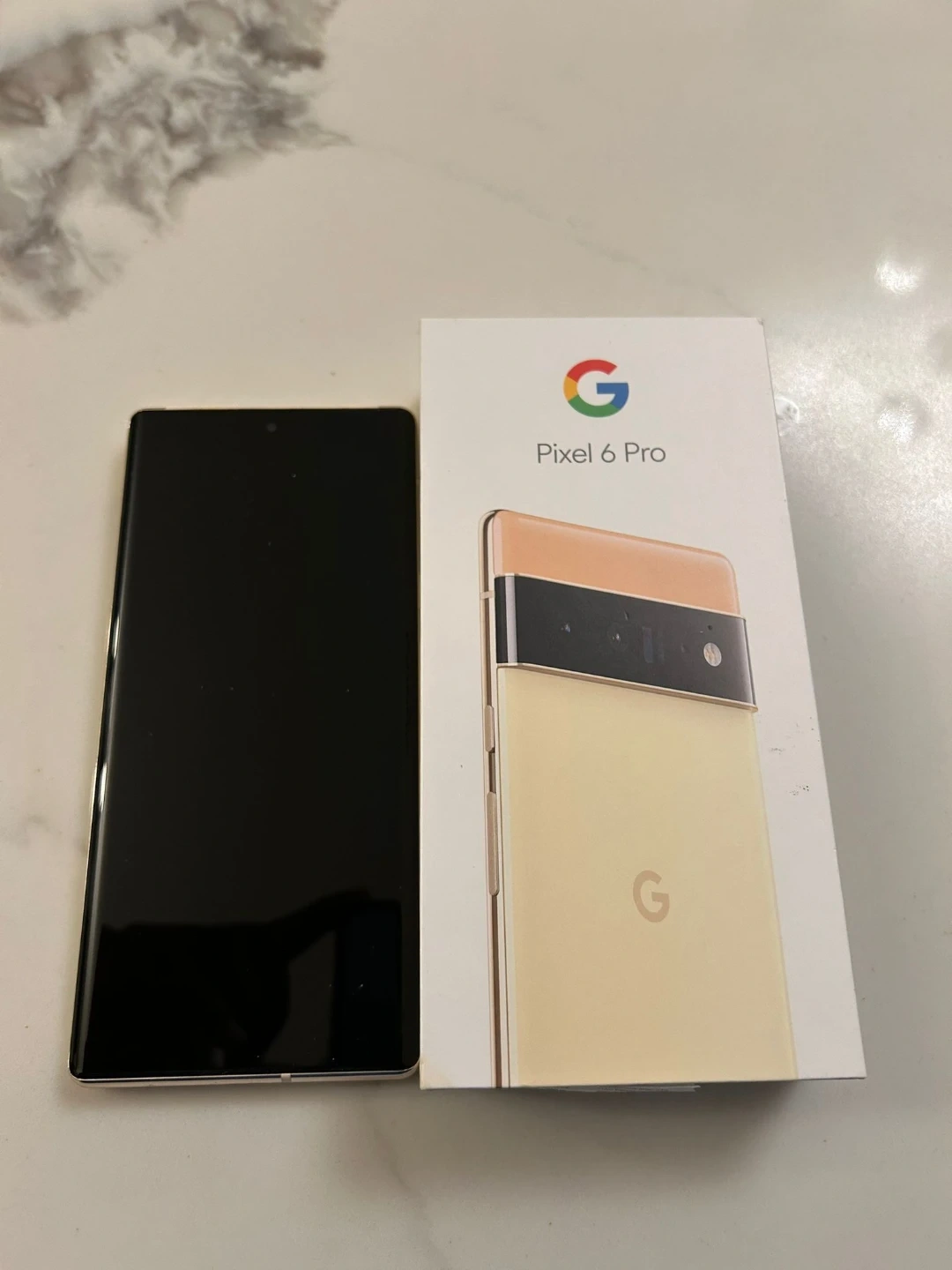 Selling a Google Pixel 6 Pro in the Sorta Sunny colour. It is in like-new condition and comes with its original box and included components!