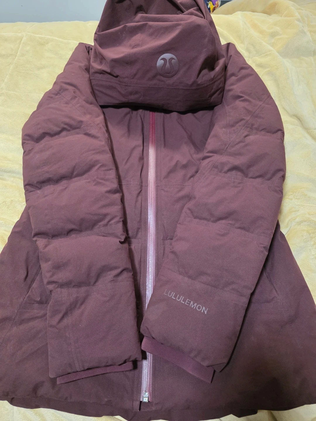 Selling a Lululemon Wunder Puff Jacket in a beautiful, deep maroon colour.
