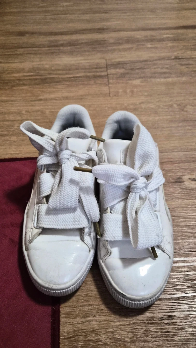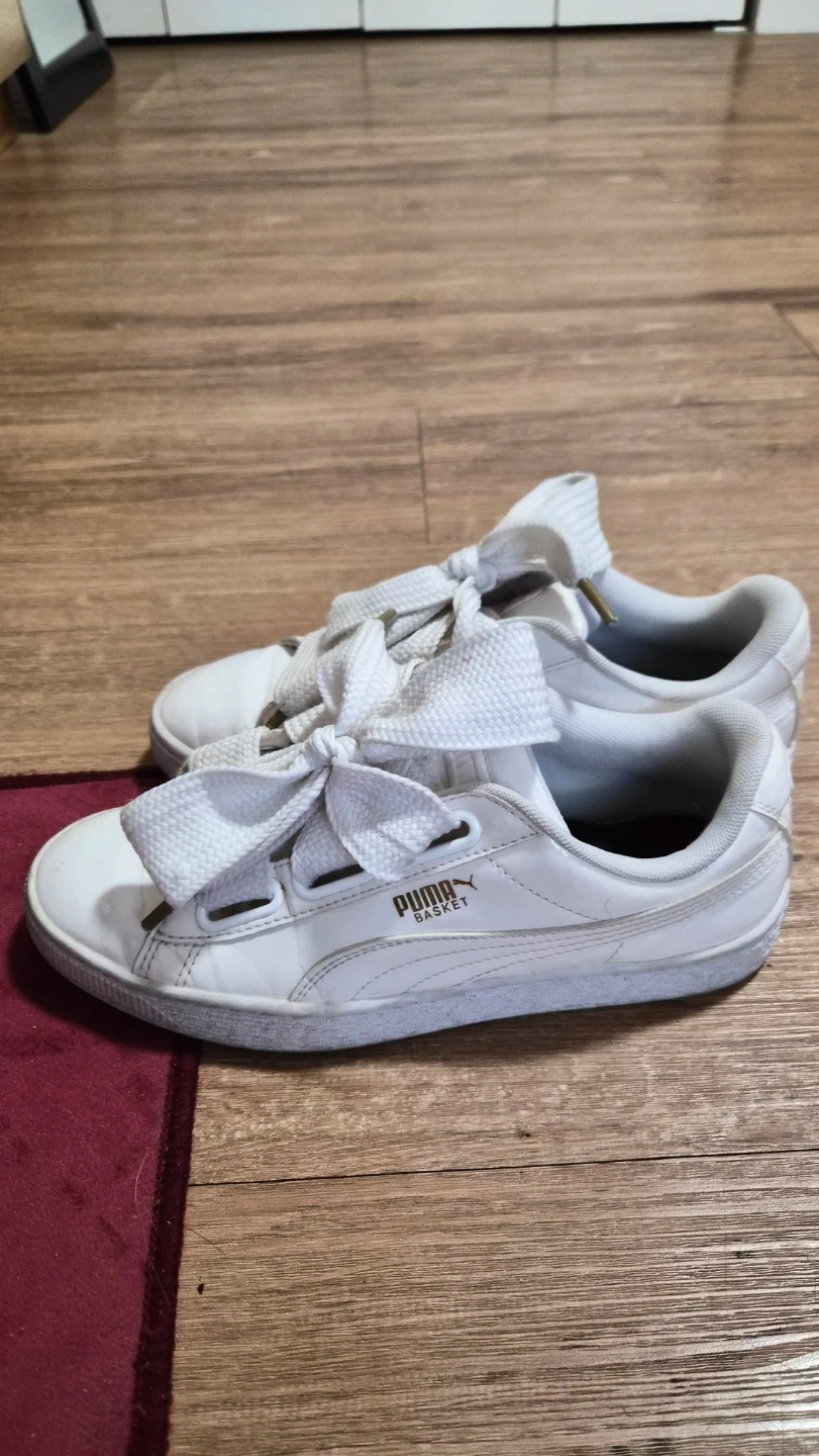 Selling a pair of puma ribbon shoes size 7. It is too big I wore them only 2 or 3 timss