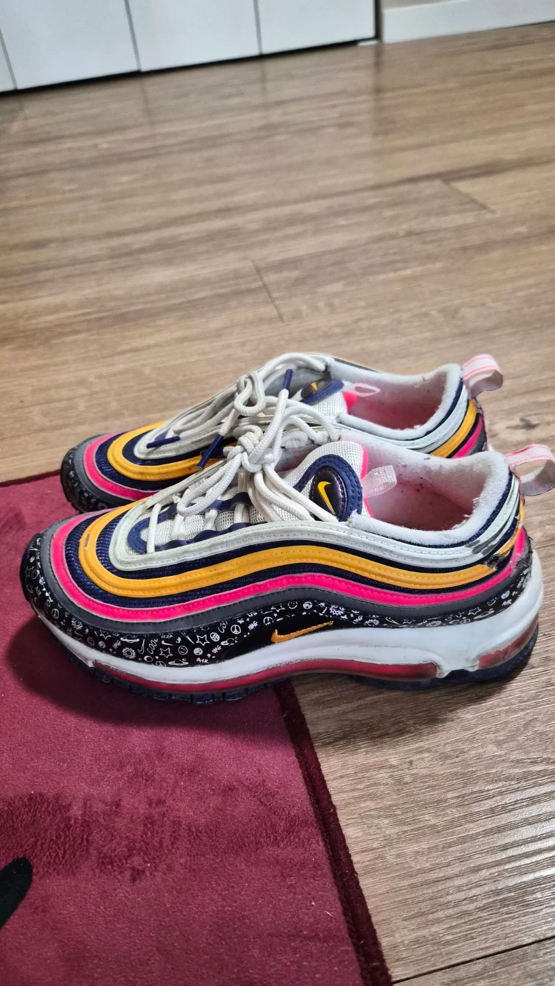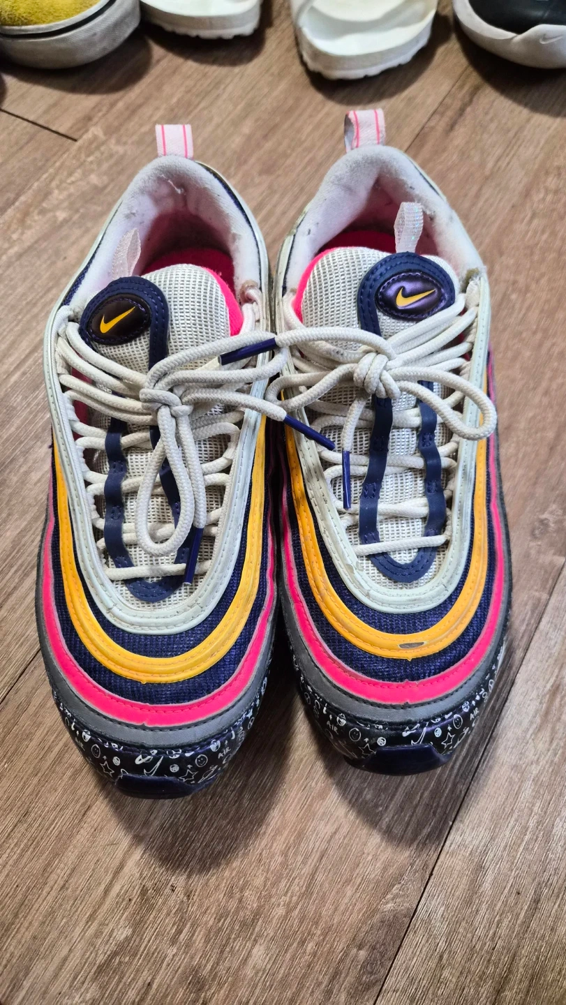 Selling a pair of Nike Air Max 97 sneakers. They have a unique and colourful design, perfect for adding a pop to any outfit! Size 5