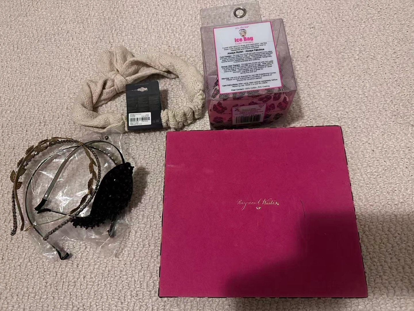 Selling a Raymond Waites organizer box! It features a fun leopard print design on the outside and a pink felt interior with dividers. Perfect for keeping your accessories or small items neatly organized. Plus all accessories in the pictures