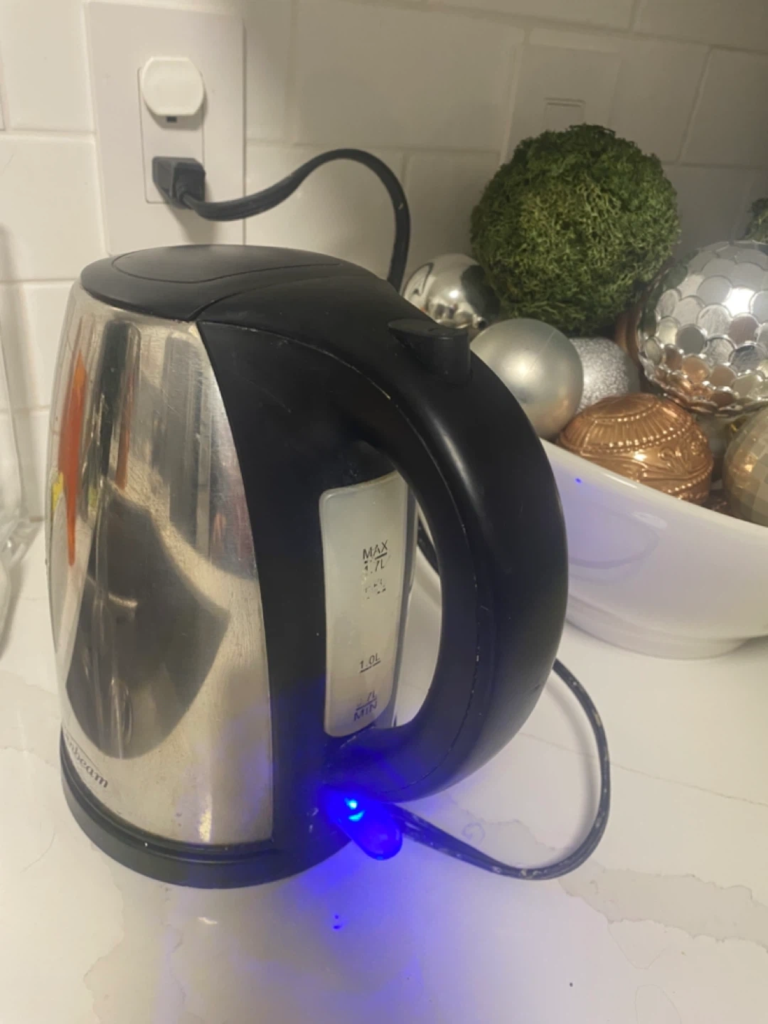 Selling a used Sunbeam electric kettle. It has a stainless steel finish with a black handle and top.works great! It can hold up to 1.7L of water.