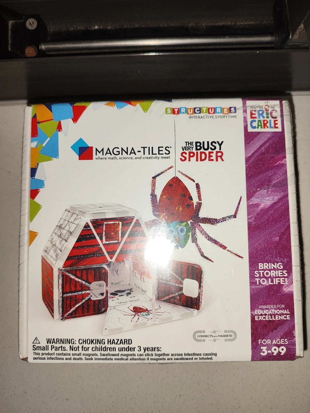 Magna-Tiles Structures The Very Busy Spider set where math, science, and creativity meet! It connects with magnets and is awarded for educational excellence. It's for ages 3-99.