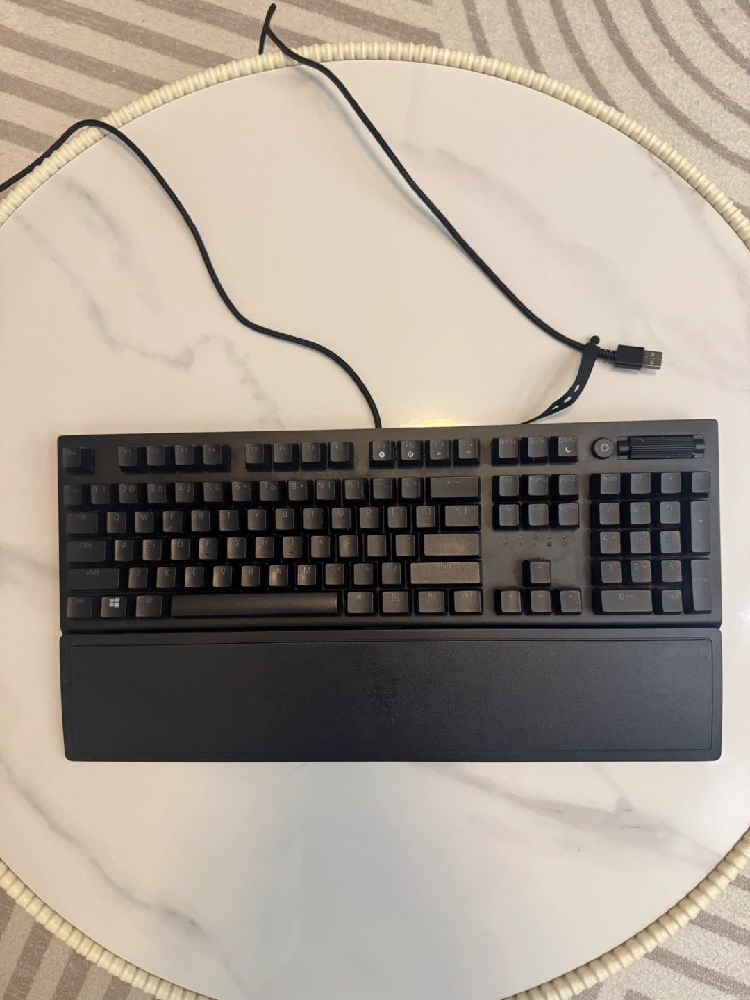 Selling a Razer BlackWidow 3 Elite mechanical keyboard in good condition. It's a full-sized keyboard, perfect for gaming or work. It comes with a wrist rest for added comfort during long sessions. If you're looking for a reliable and responsive keyboard, this could be a great choice!