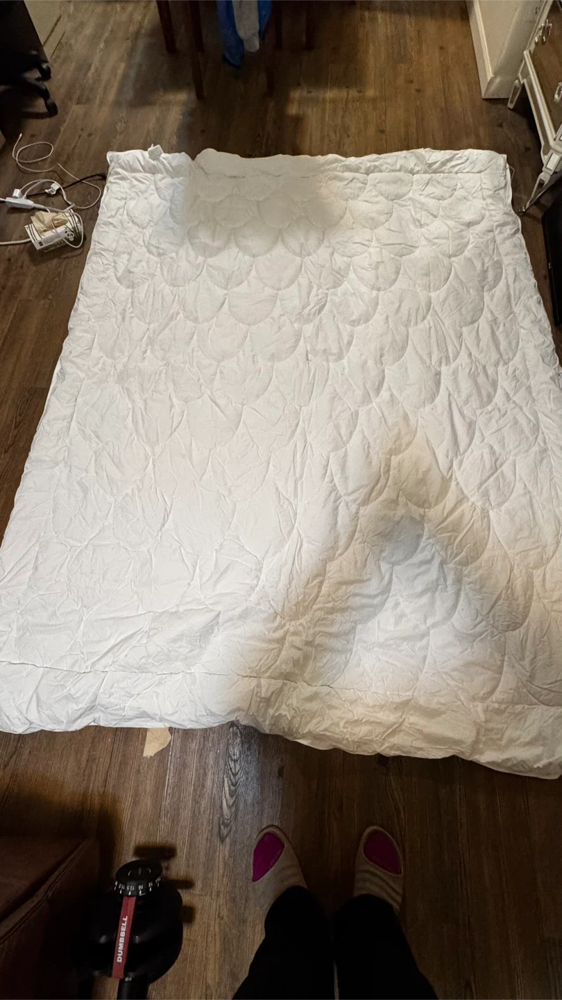 Selling a Maholi quilted mattress pad in white. It's in great condition and ready to keep your mattress comfy and protected! 100% cotton。