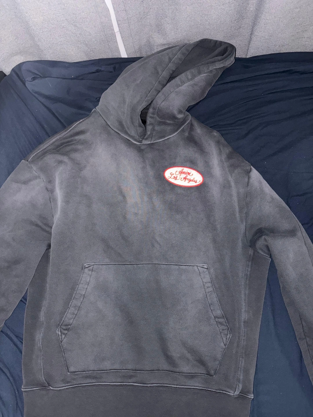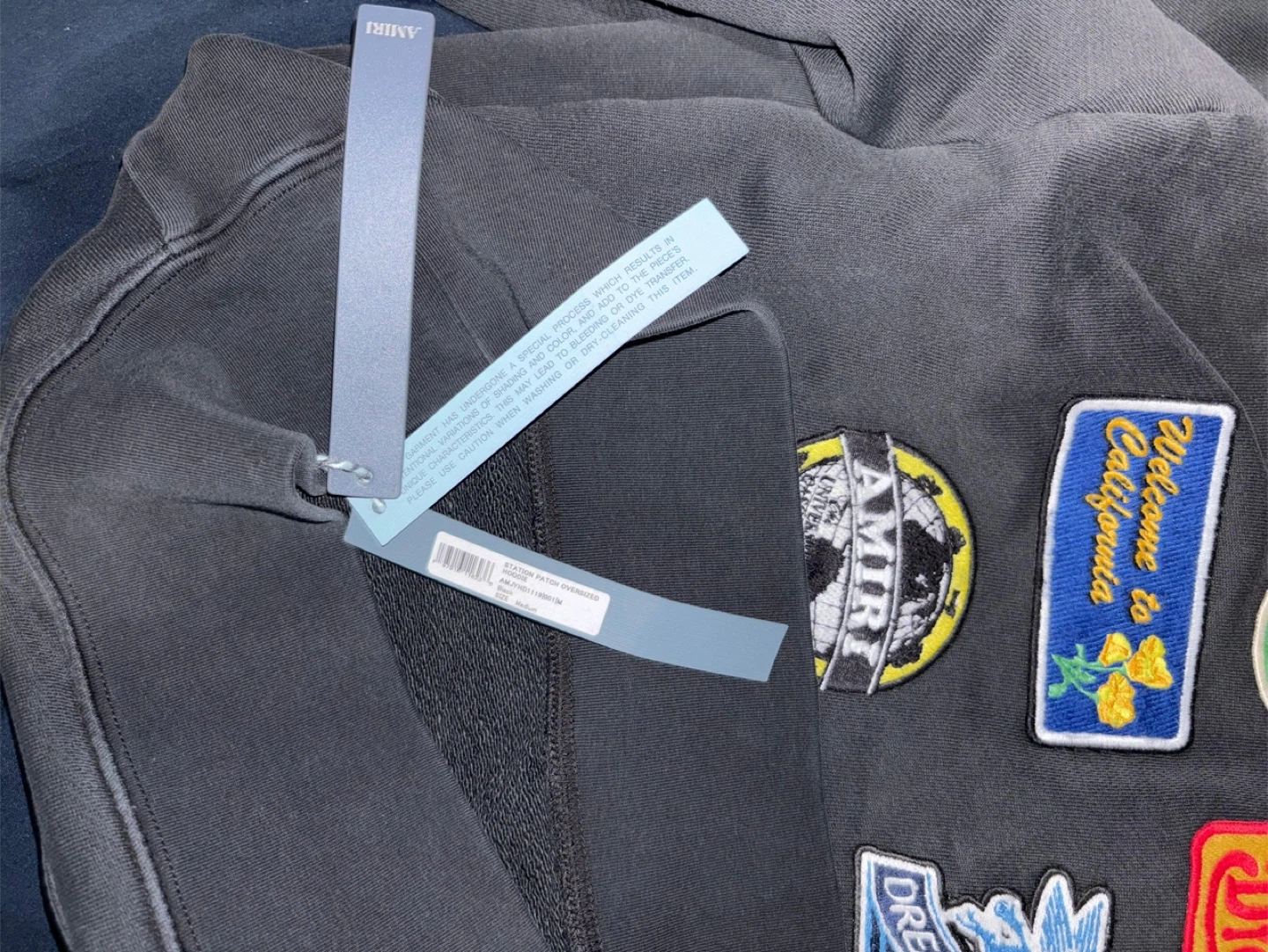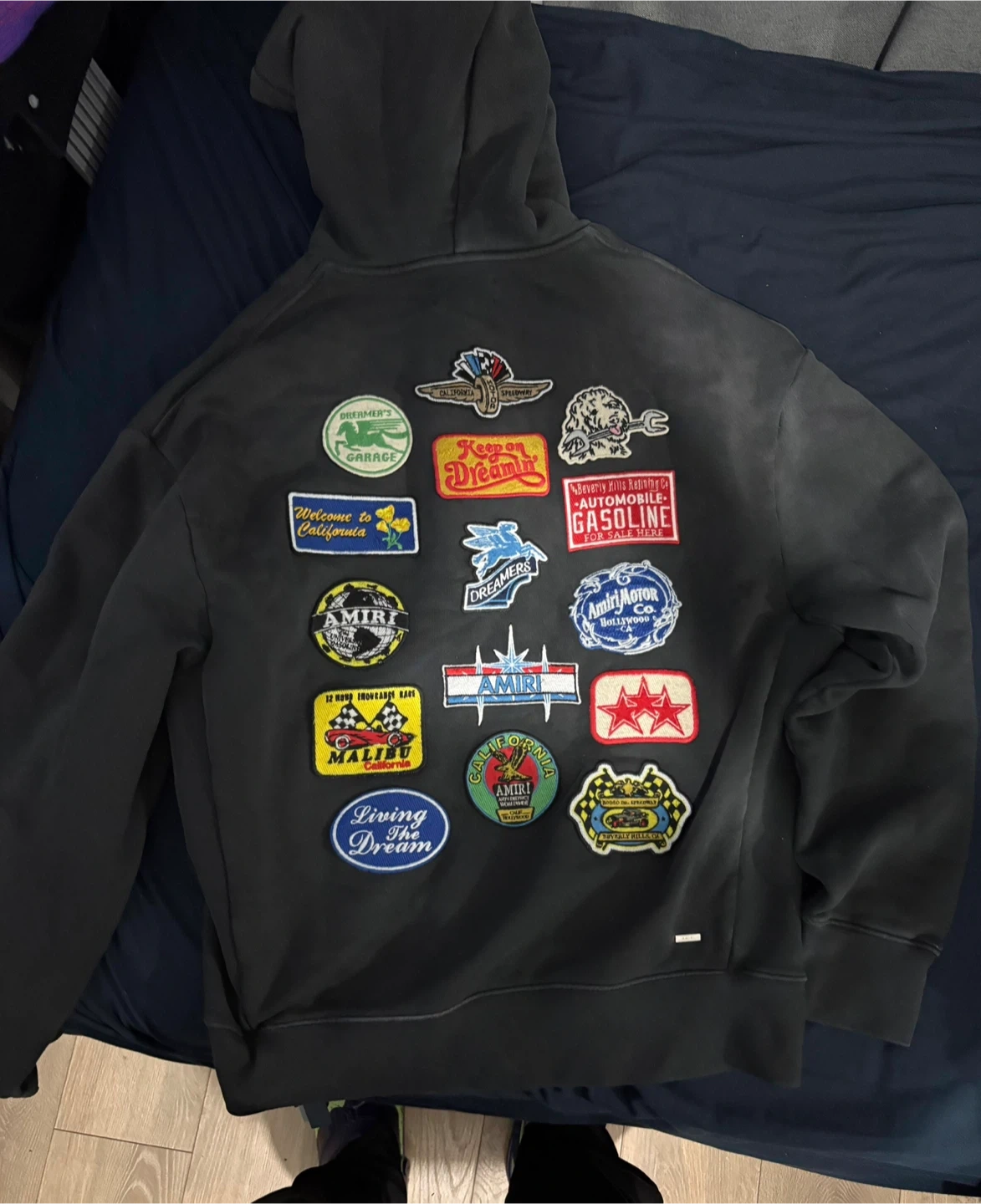 Selling an Amiri Station Patch Oversized Hoodie in size medium. It's a stylish hoodie with unique patch details. Perfect for adding a bit of flair to your wardrobe!