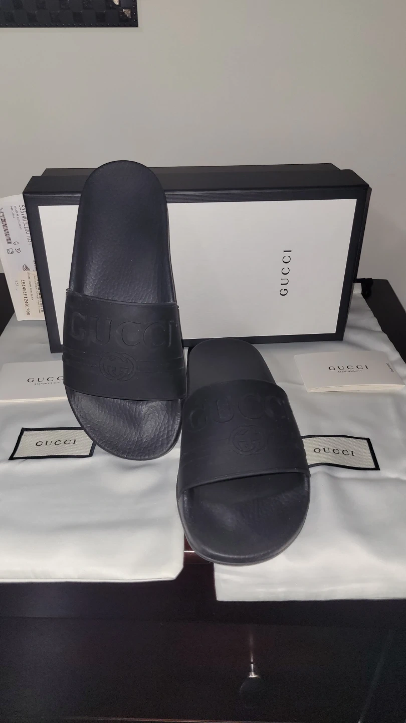 Buy & SellGucci Like Slides - Size 7 - 7.5 Black worn once box, dust bagsGucci Like Slides - Size 7 - 7.5 Black worn once box, dust bags$90Selling a pair of Gucci like slides in black. They are a size 7 to 7.5 with the box and dust bag worn onceConditionLike newTalla7.5WHERE TO MEETCheck LocationView MapSELLERverifiedfrancescaBram E620 reviews1 chats·2 favorites·43 viewsSEND CHAT TO SELLERHi francesca! I’m interested in your listing.Hi francesca! I’m interested in your listing.Get the Karrot app to chatSign In to chat