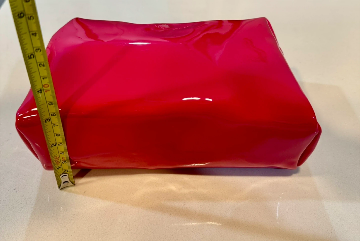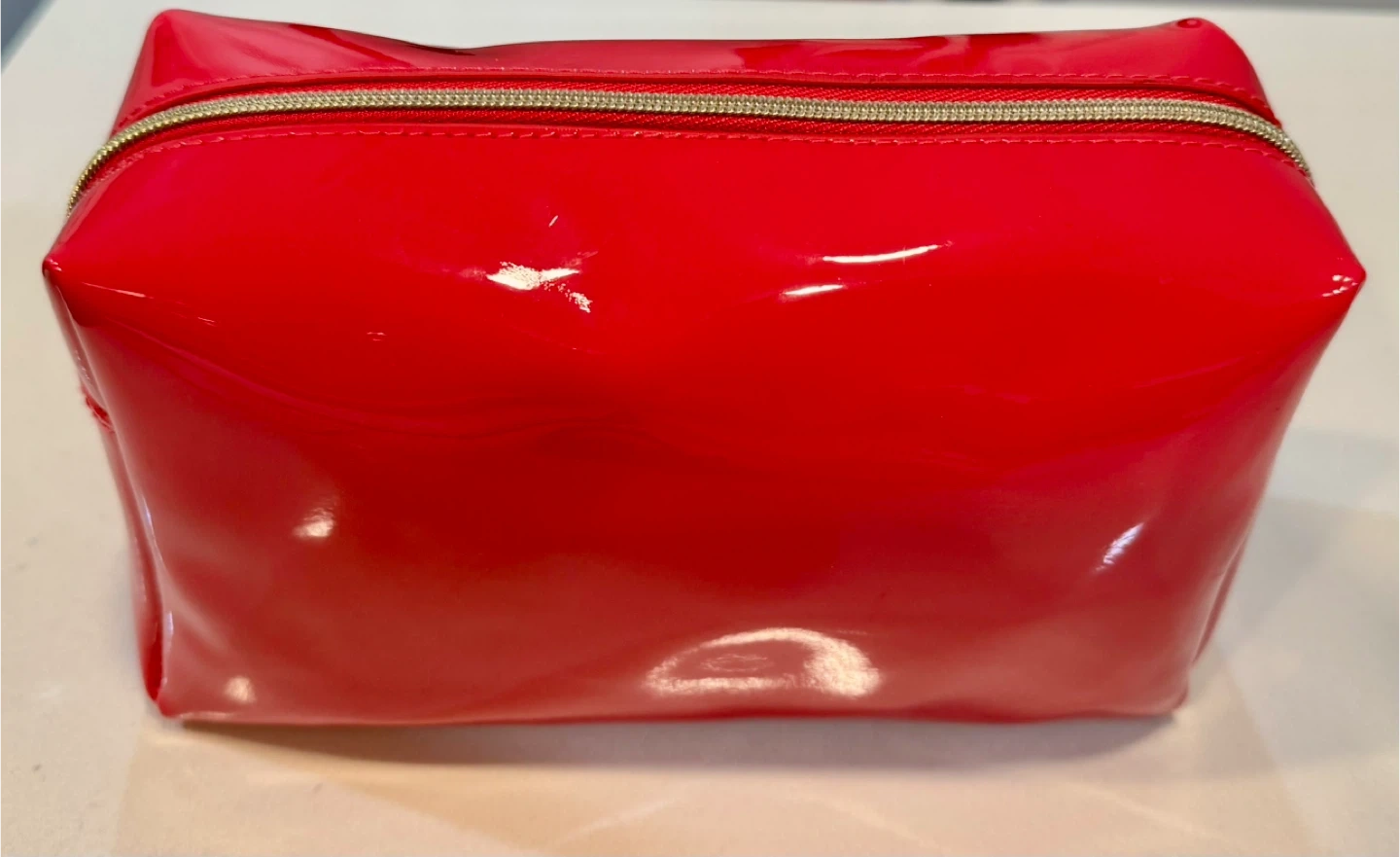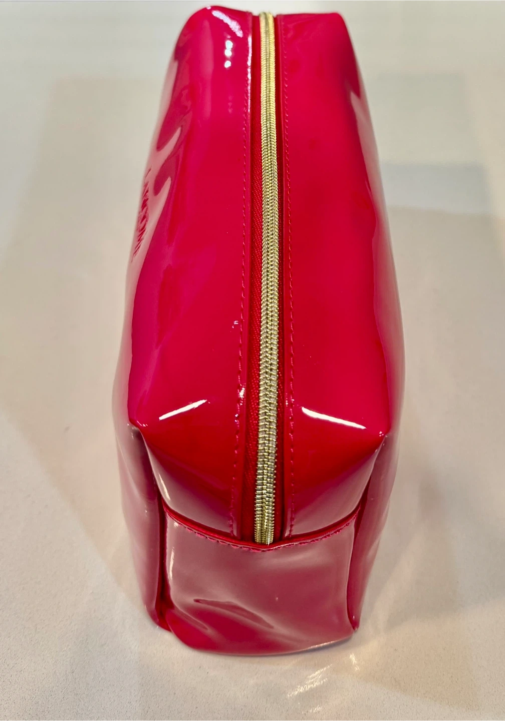 Selling a red Lancôme cosmetic bag. It's in great condition and perfect for storing your makeup or toiletries. The bag features a shiny, patent-leather-like finish and a gold zipper. It's a stylish and practical accessory to keep your essentials organized.