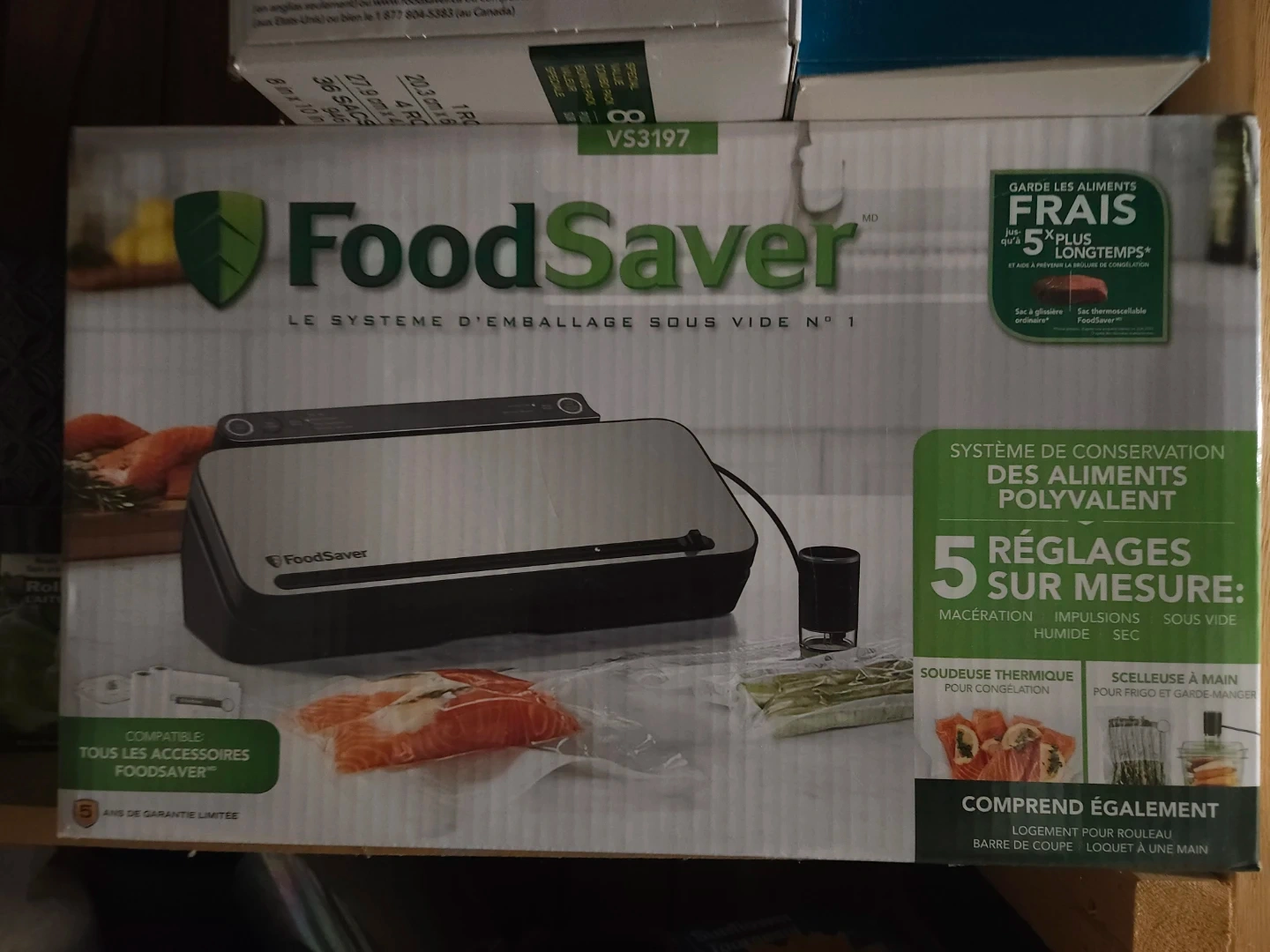 I'm selling a FoodSaver Vacuum Sealing System, model V53197. It's great for keeping your food fresh for longer! It features a system for polyvalent preservation with 5 settings. Comes with all accessories