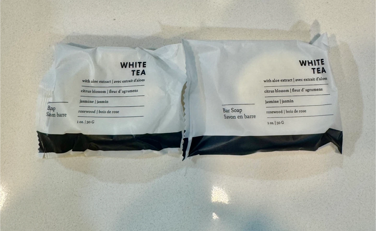 Selling two brand new White Tea bar soaps! Each soap is 1 oz / 30 G and includes aloe extract, citrus blossom, jasmine, and rosewood. Perfect for a refreshing cleanse.